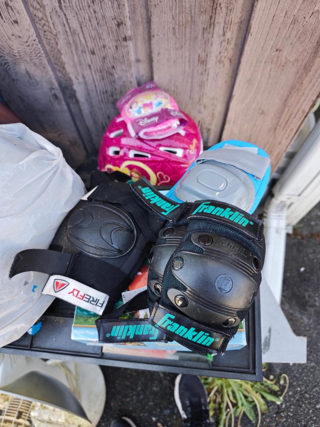 Set of kids' protective gear. Includes elbow, knee, and wrist guards. Great for skateboarding, rollerblading, and other activities.