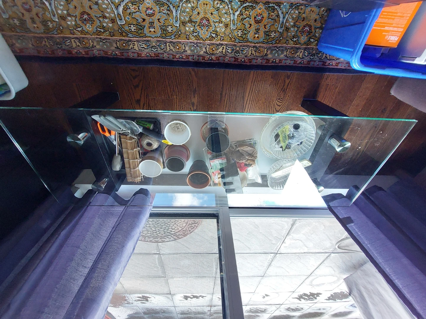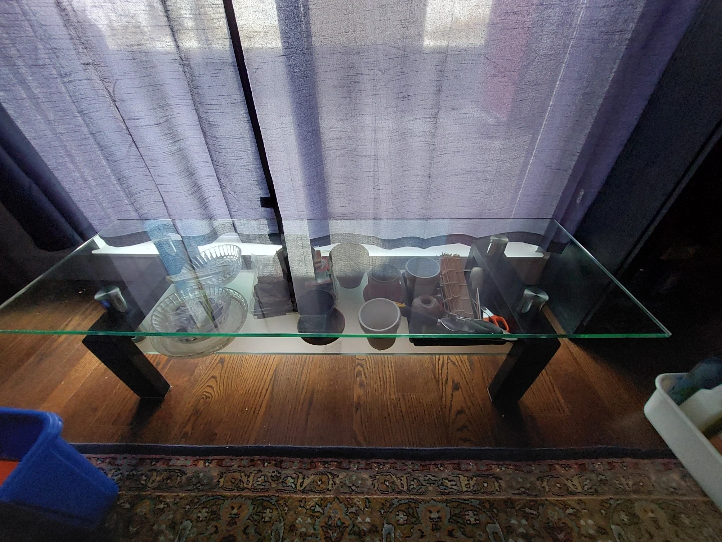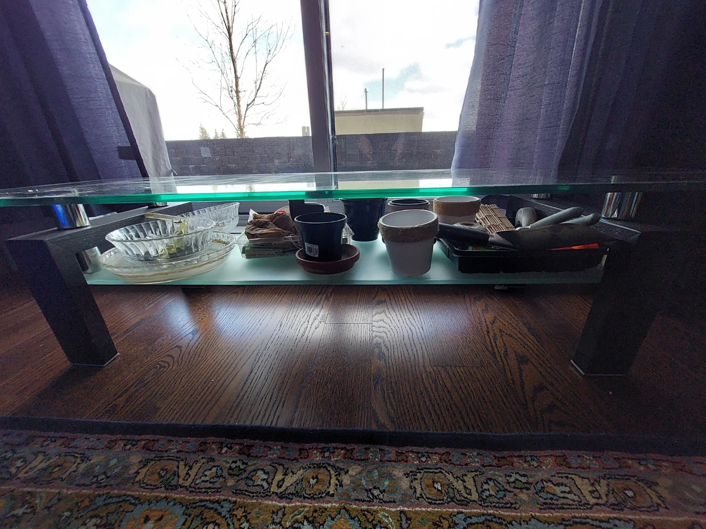 Glass top coffee table with black legs
