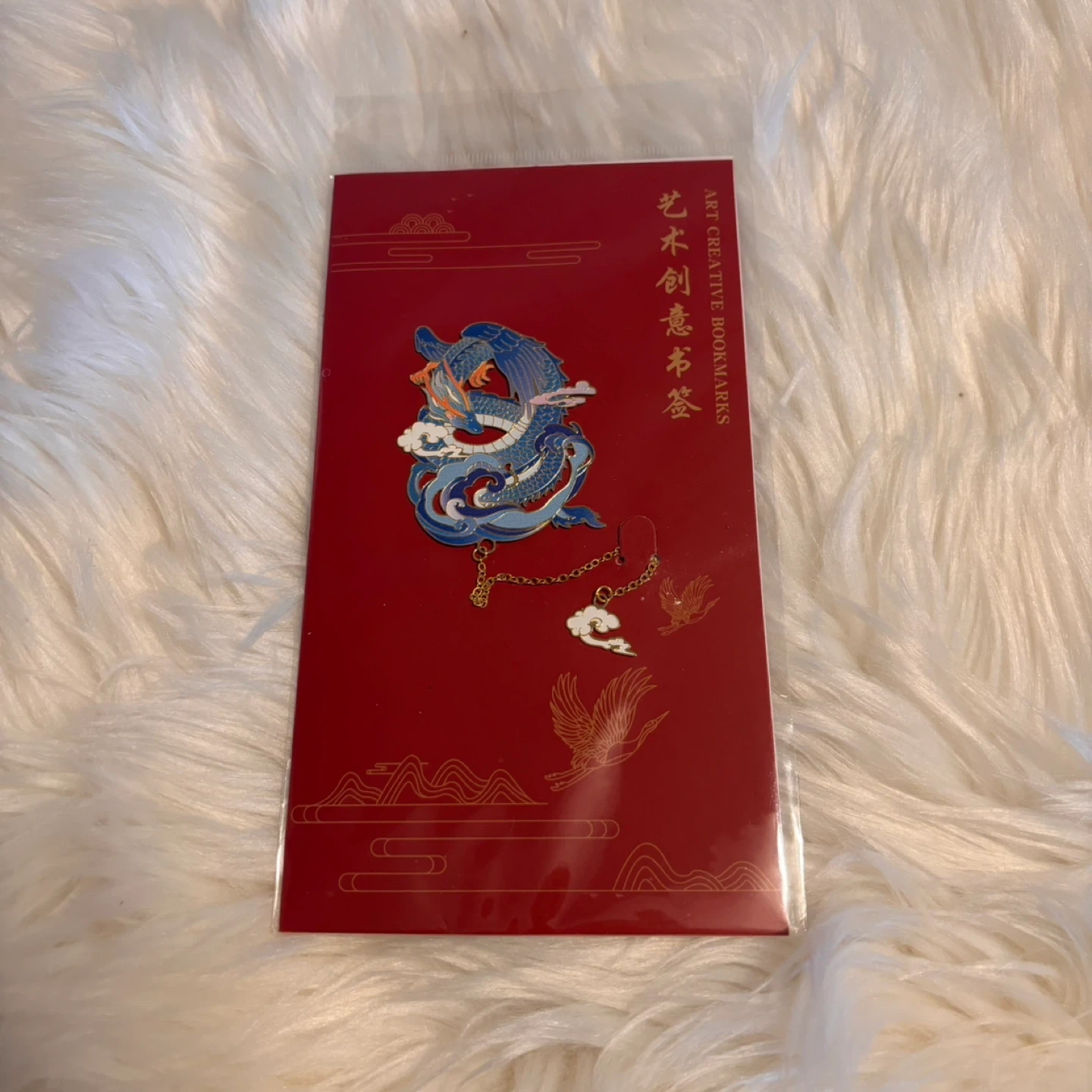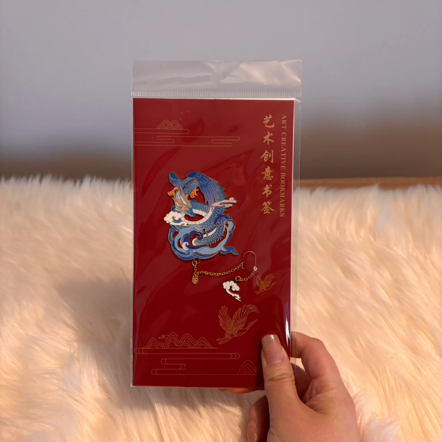 This is an art creative bookmark featuring a blue dragon design. It's made of metal. It's perfect for marking pages in your favourite books!