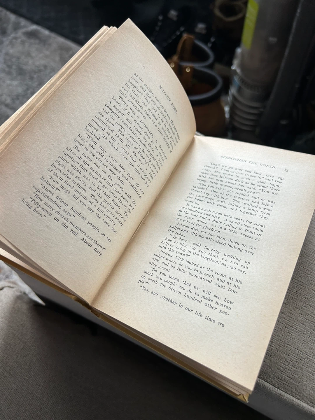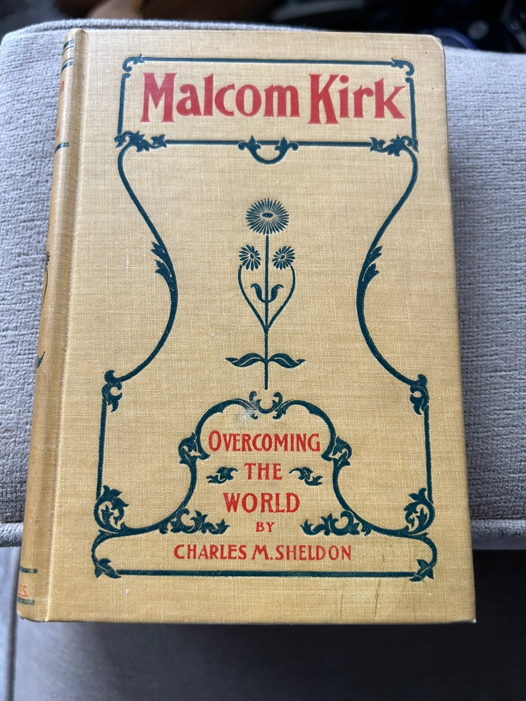 Selling the book Overcoming the World by Charles M. Sheldon! It's part of the Malcolm Kirk series. A lovely read!