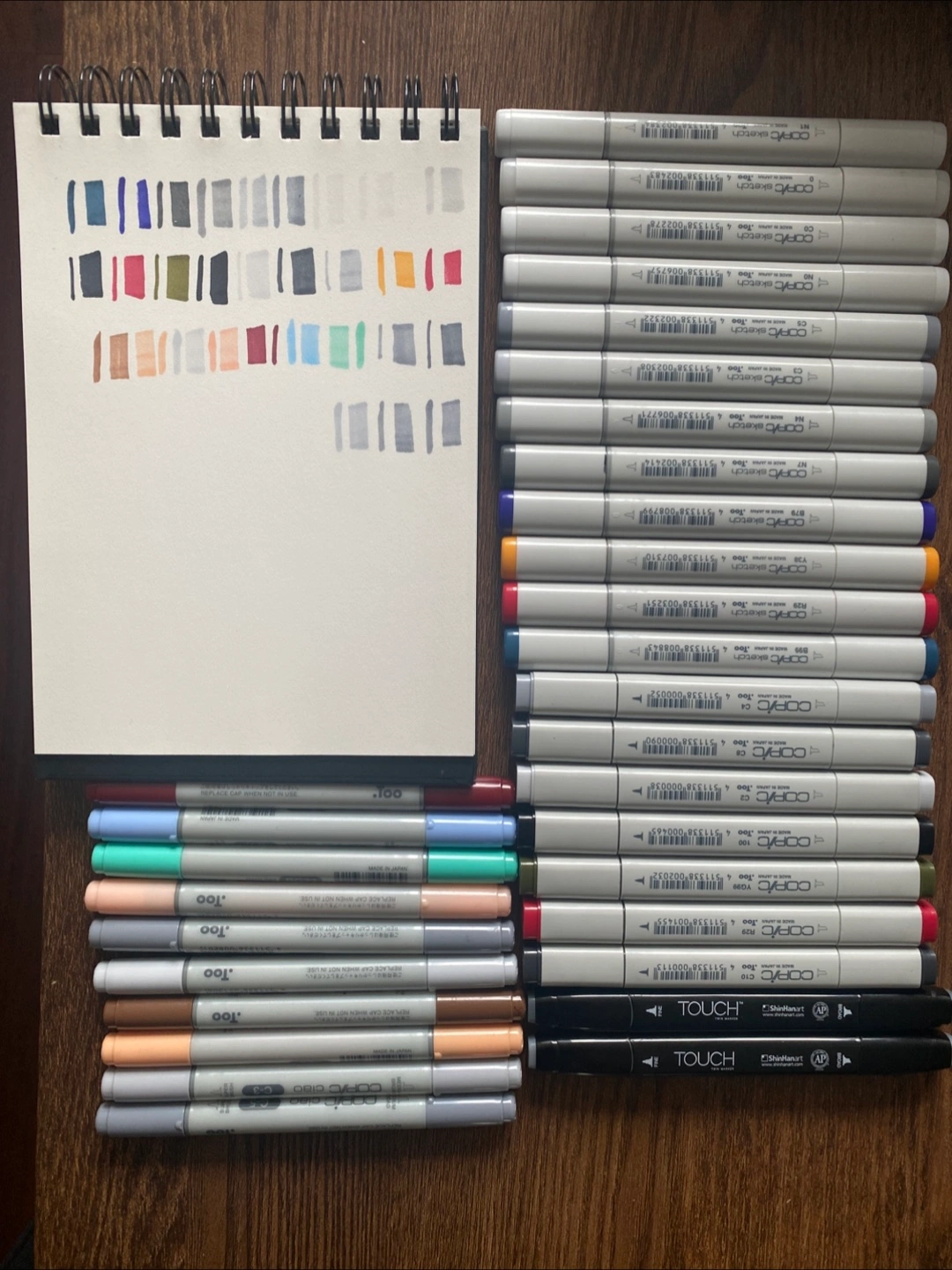 Selling an assorted set of 31 Copic Sketch markers! Great for artists, designers, or anyone who enjoys colouring and drawing. Markers are in excellent condition. Colours include a range of greys, blues, browns, and more. Plus, a free pencel case. Perfect for adding detail and shading to your artwork
