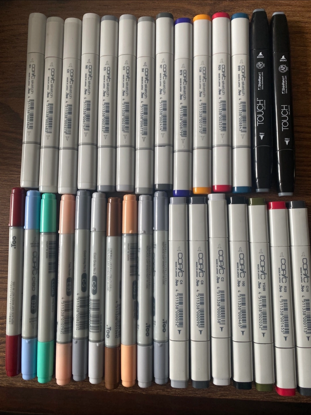 Selling an assorted set of 31 Copic Sketch markers! Great for artists, designers, or anyone who enjoys colouring and drawing. Markers are in excellent condition. Colours include a range of greys, blues, browns, and more. Plus, a free pencel case. Perfect for adding detail and shading to your artwork