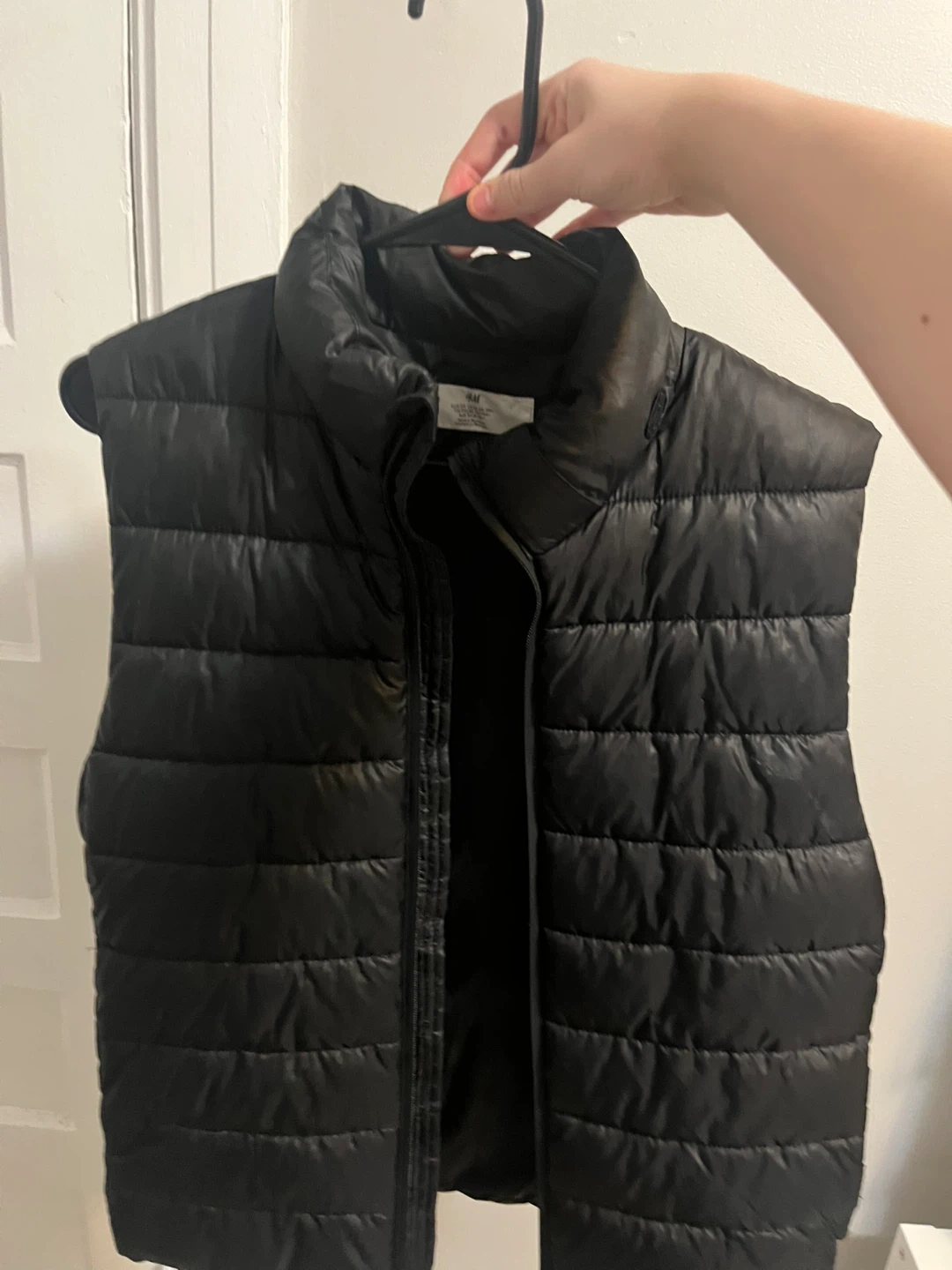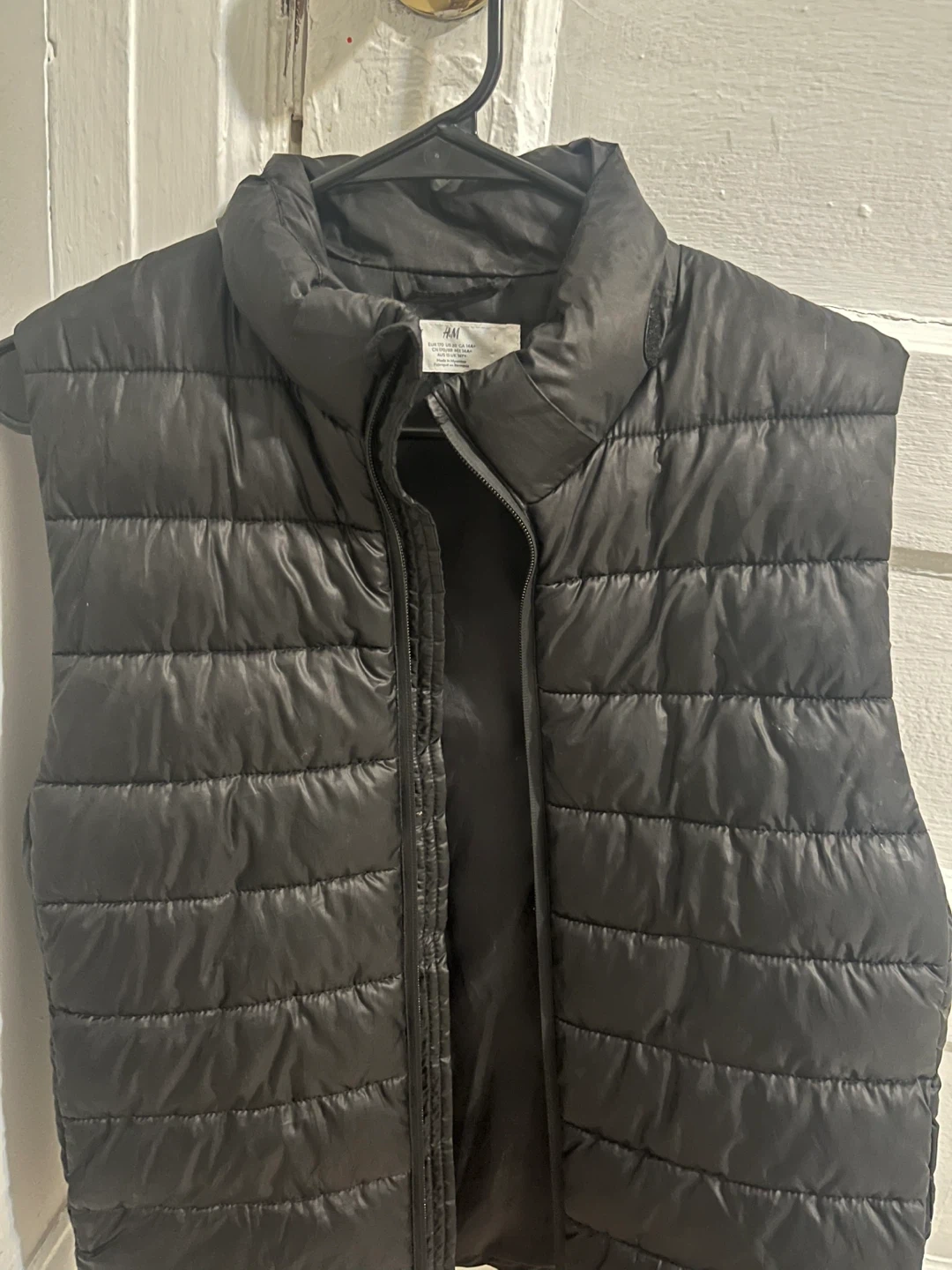 Selling a gently used black puffer vest from H&M in size medium. It's perfect for layering and adding a bit of warmth on cooler days. Great condition and ready for a new home!