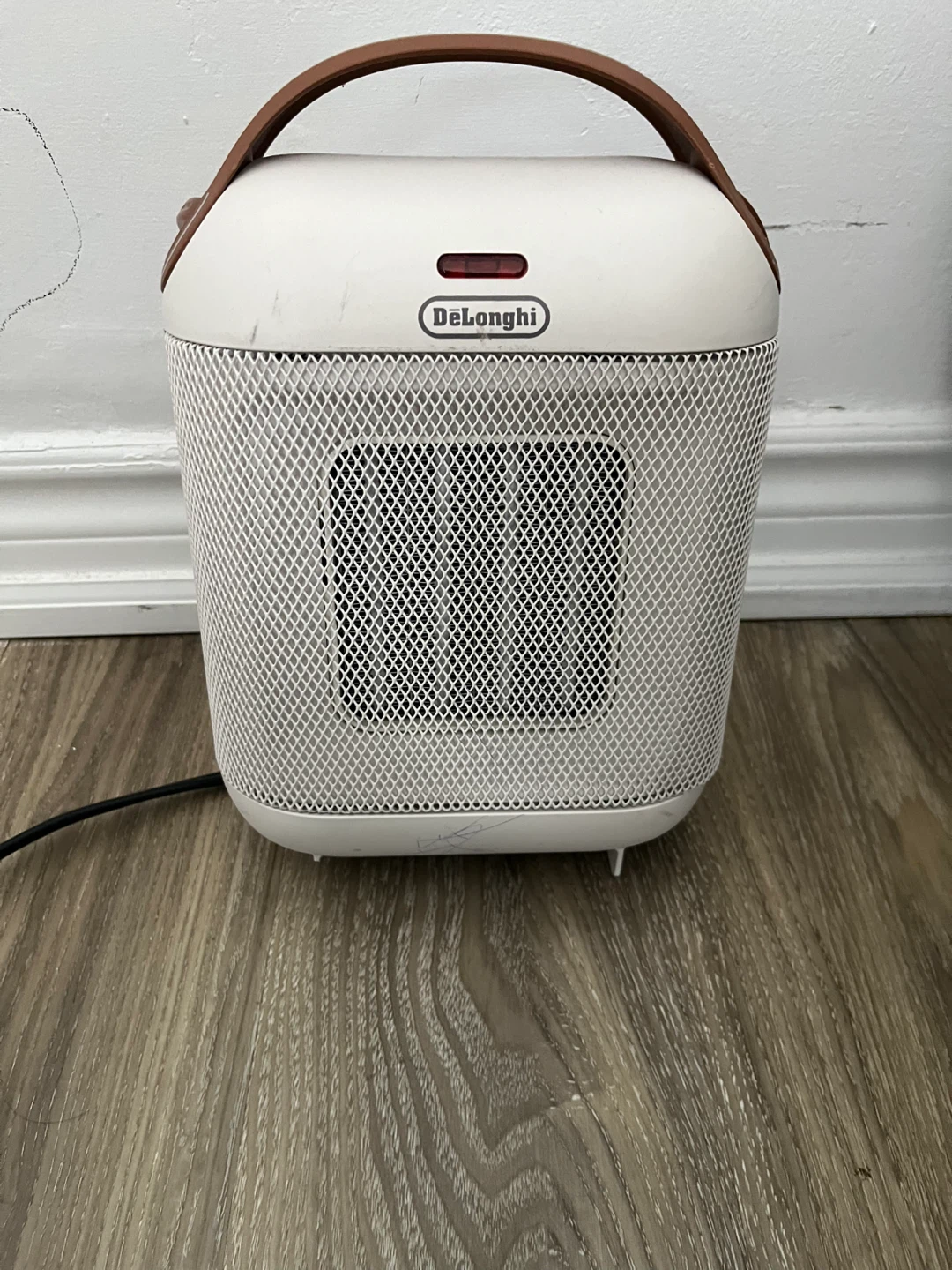 Selling a DeLonghi ceramic heater. It's in great condition and ready to keep you warm this winter! It features a handle for easy portability and a simple control knob