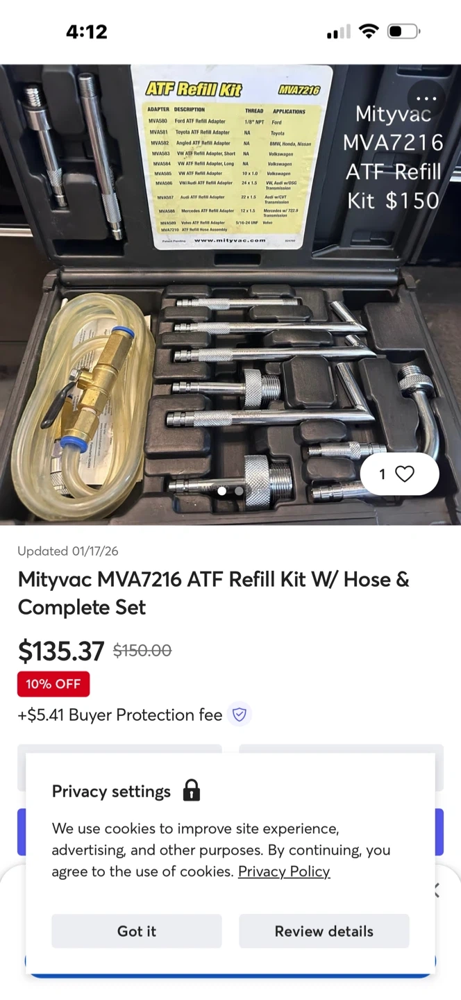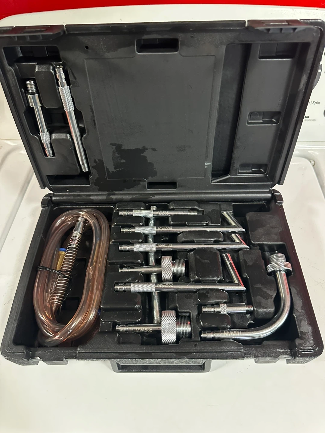 This is a MAC Tools ATF Adaptor Kit. It includes various metal adapters and a flexible hose. The kit comes in a black plastic carrying case. Bronx cash only