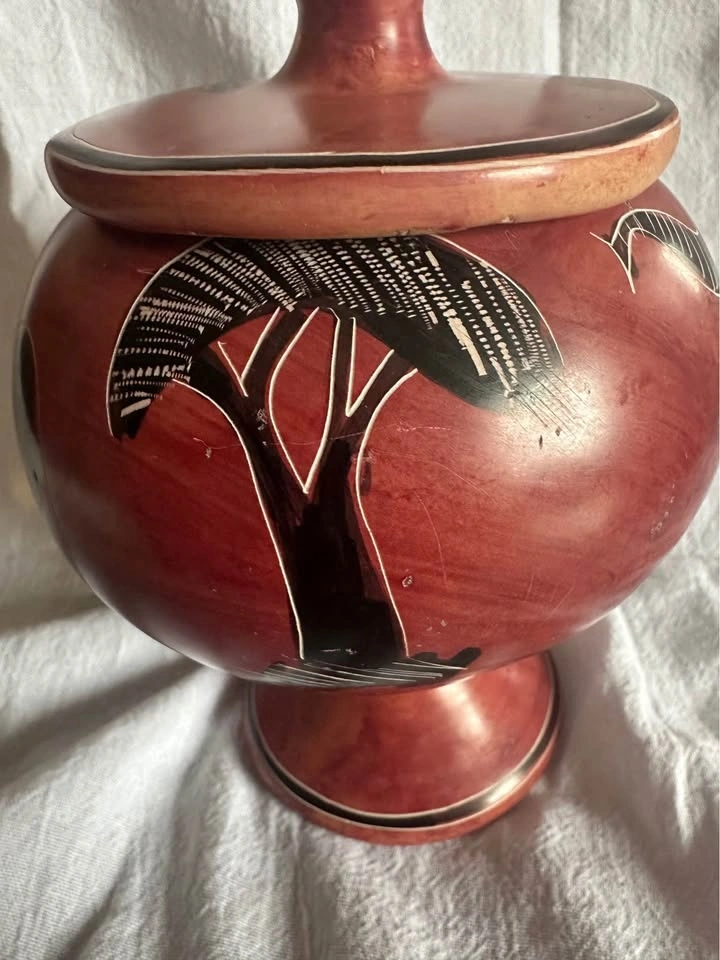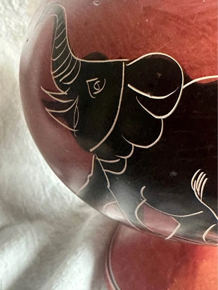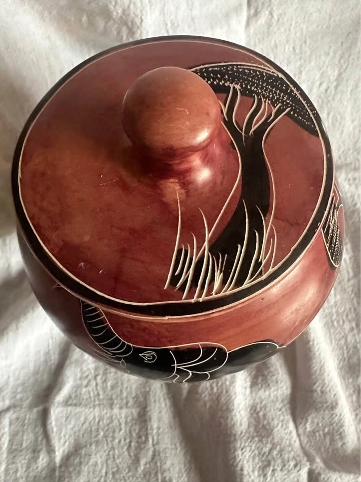 One-of-a-kind, hand sculpted and etched genuine soapstone trinket, keepsake ring box. Vintage item of rarity in pristine pre-owned condition.