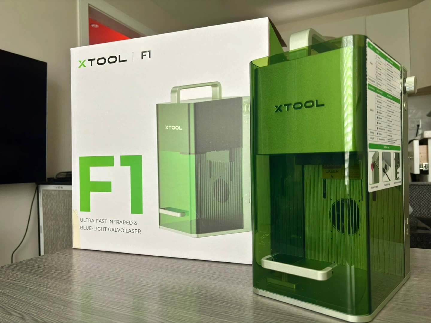 This XTOOL F1 laser engraver and cutter is ultra-fast. It utilizes both infrared and blue-light galvo laser technology. Great for precise crafting and engraving projects!
