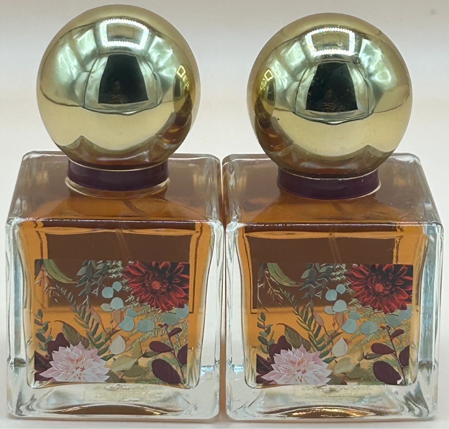Two bottles of Dahlia perfume by Bath & Body Works. Each bottle contains 1.7 fl oz or 50 ml. Flammable, keep away from flame or high heat.