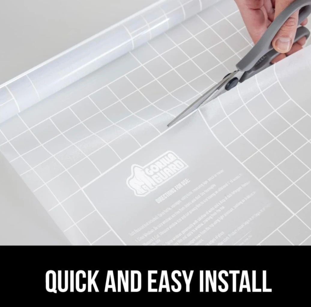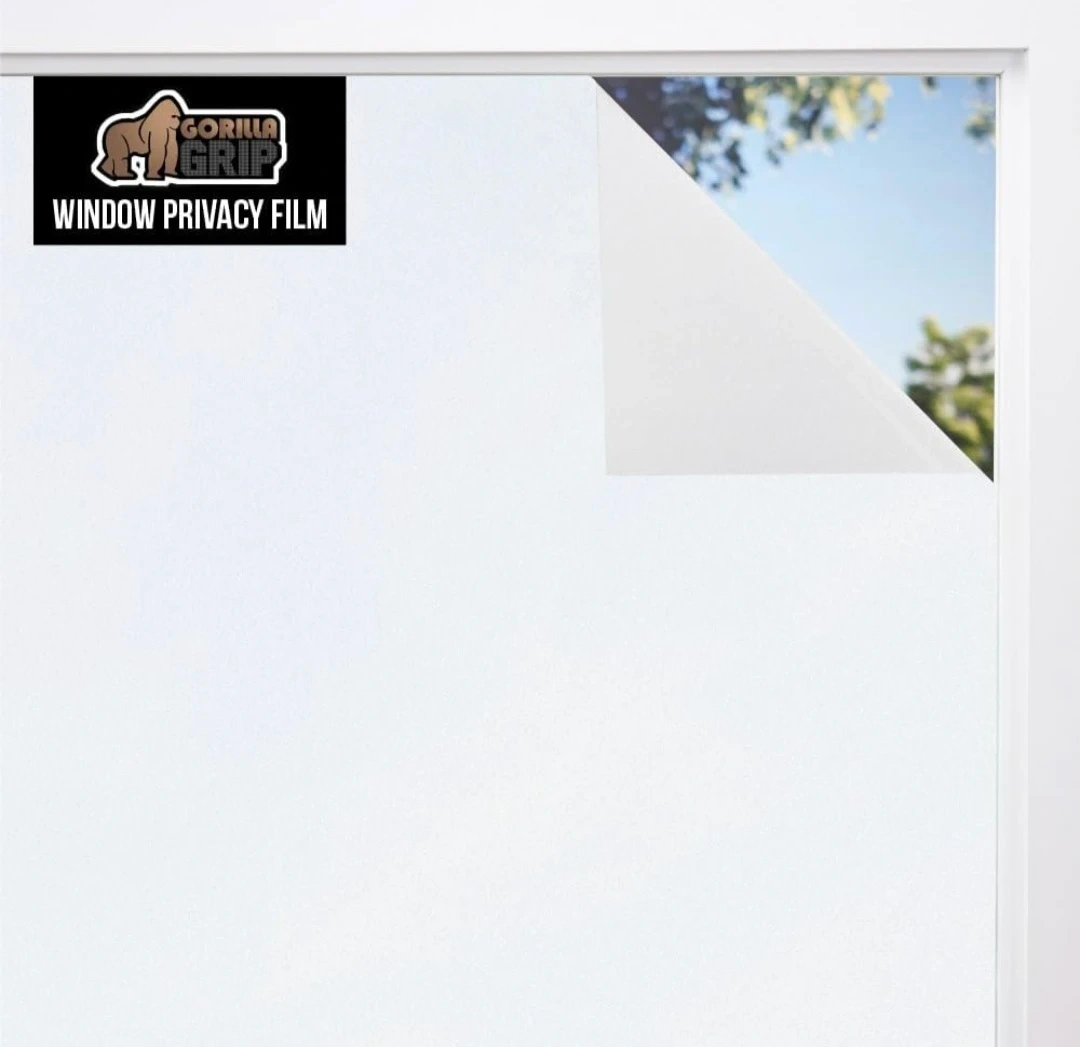Gorilla Guard Two Way Window Privacy Film, Peel & Stick. 35.4" x 72" extra wide. Offers 24/7 two-way privacy for your home. Reusable, static cling application. Gridline backing makes cutting easy for a simple install!