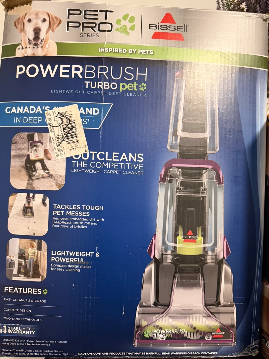 This Bissell PowerBrush Turbo Pet is a lightweight carpet and fabric cleaner. It features a two-tank system for clean and dirty water. It's designed to tackle tough pet messes with its rotating brush roll and deep cleaning power.