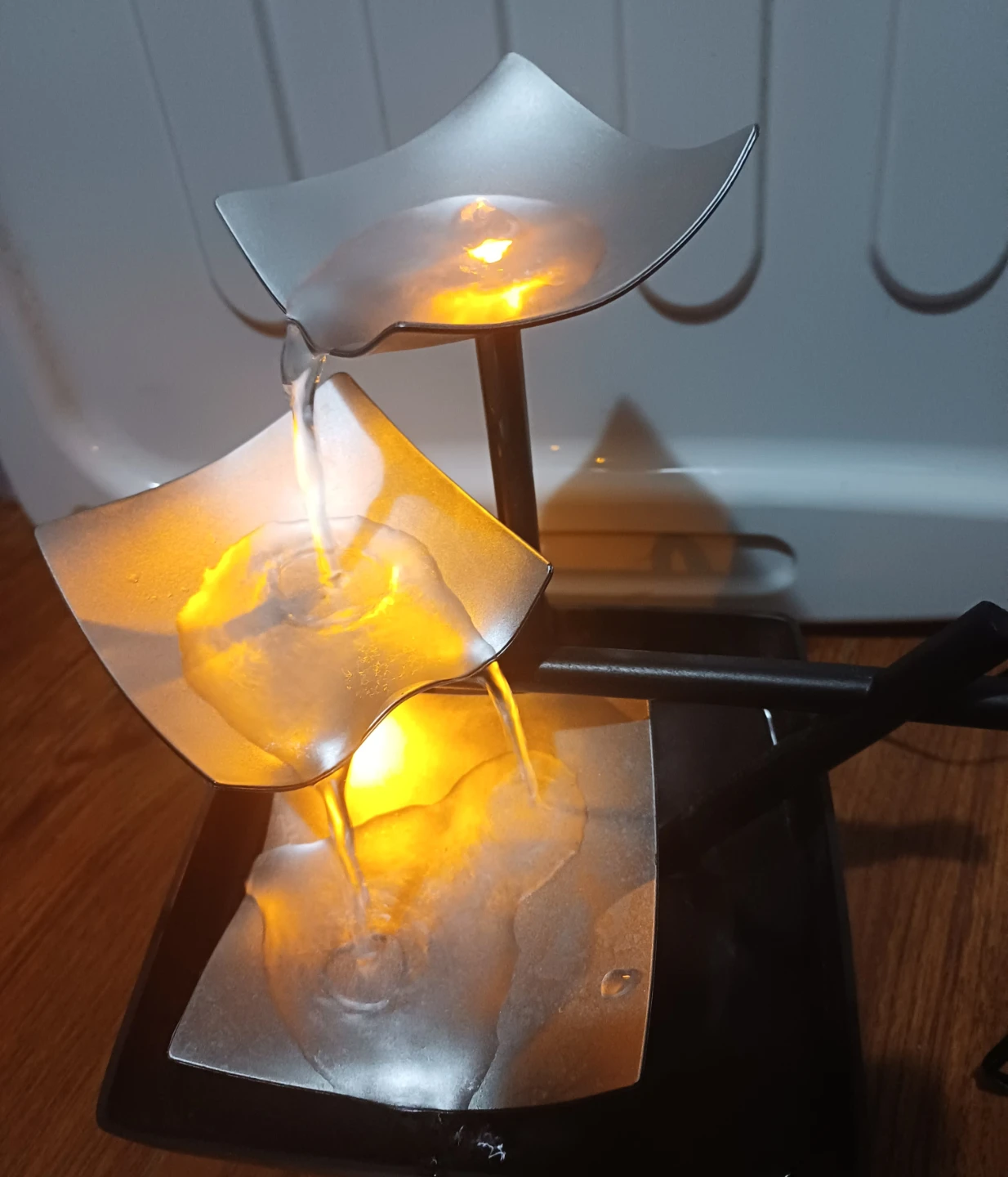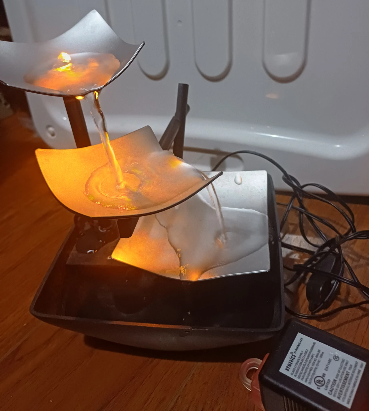 HoMedics ZenScape tabletop water fountain with a built-in light. It's a multi-tiered design with flowing water. Includes the original power adapter.
