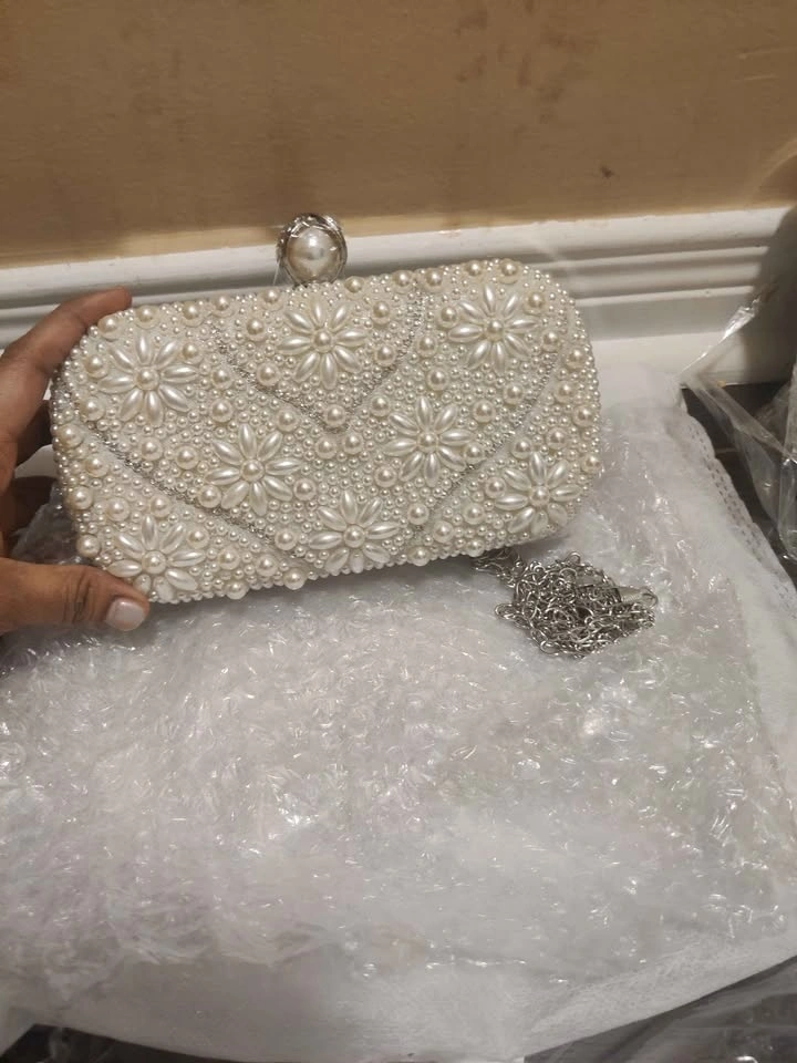 Brand new white pearl evening bags for women
