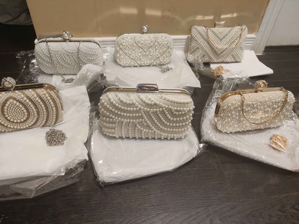 Beautiful white pearl embedded evening party wedding bags for women. Price is $28-$30 each. Pick up only, cash only. Located very close to Erin Mills Town Centre mall. Please check out my other listings for more bags. Serious buyers only please.