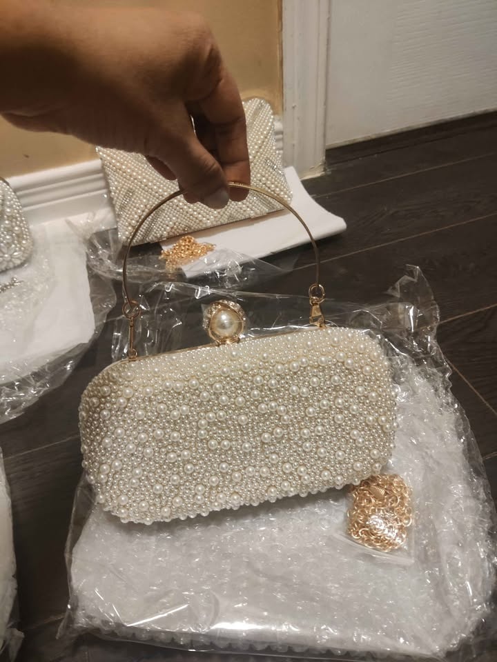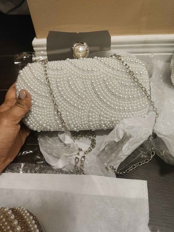 Brand new white pearl evening bags for women