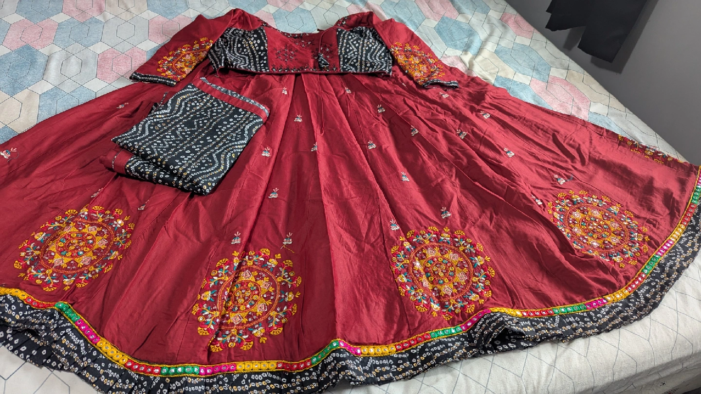 Beautiful maroon lehenga choli with intricate embroidery. This set includes a skirt (lehenga), blouse (choli), and dupatta. Perfect for special occasions!