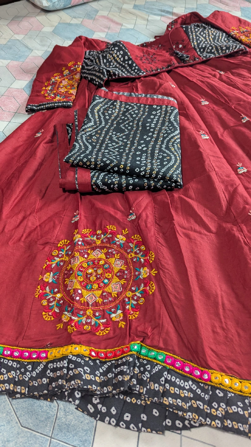 Beautiful maroon lehenga choli with intricate embroidery. This set includes a skirt (lehenga), blouse (choli), and dupatta. Perfect for special occasions!