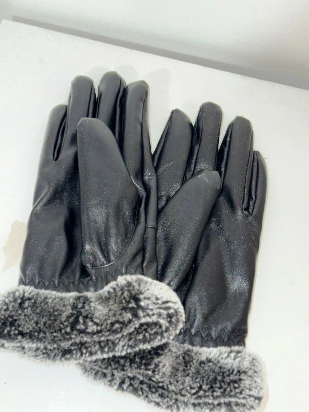 Black Faux Leather Gloves with Fur Lining