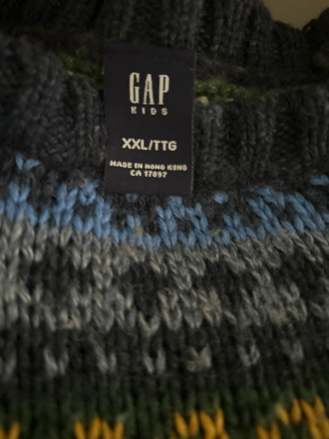 GAP Kids sweater, size XXL. It's in great condition and perfect for keeping your little one warm and stylish! Great for fall going into winter. Pet and smoke free home.