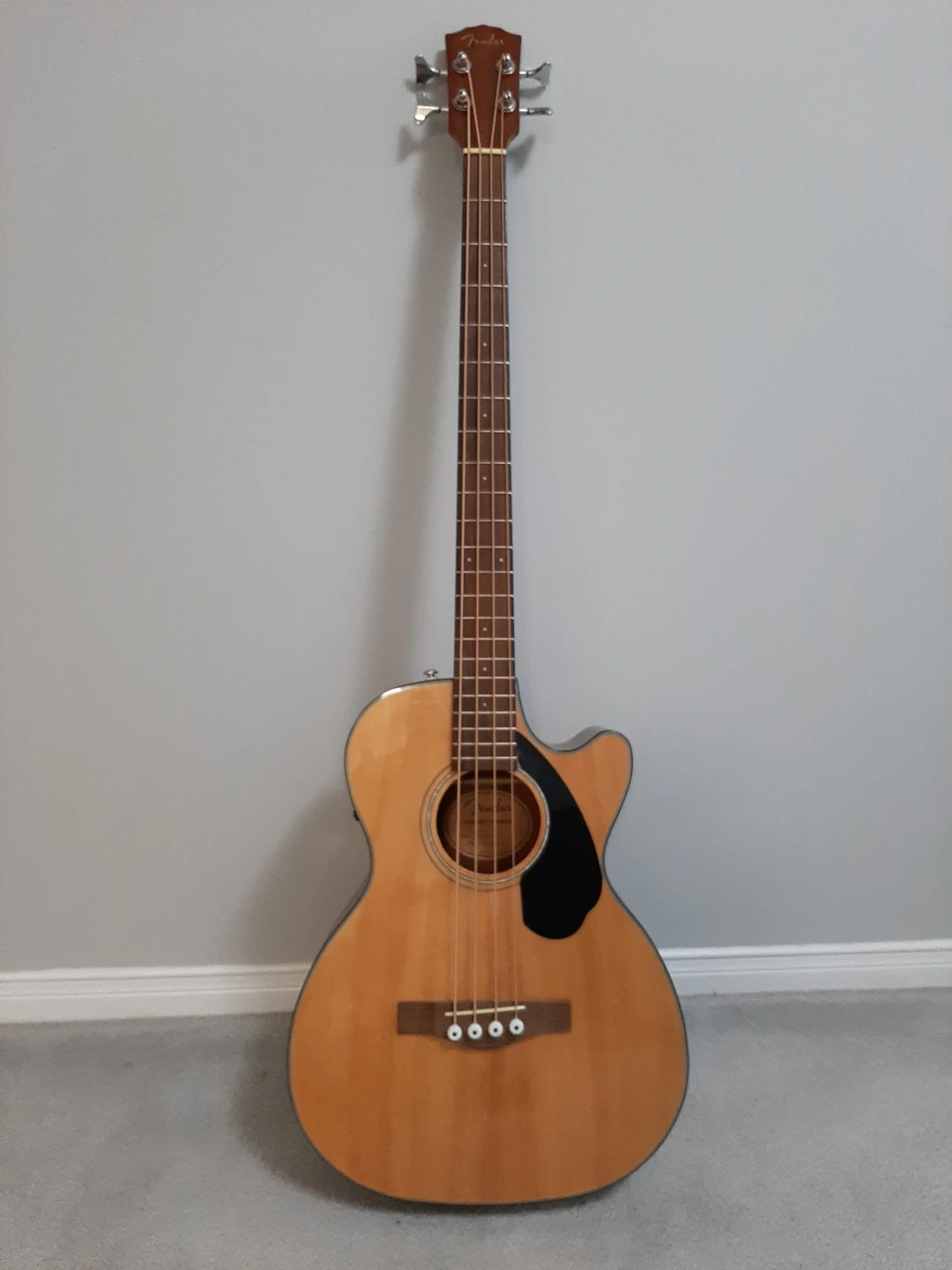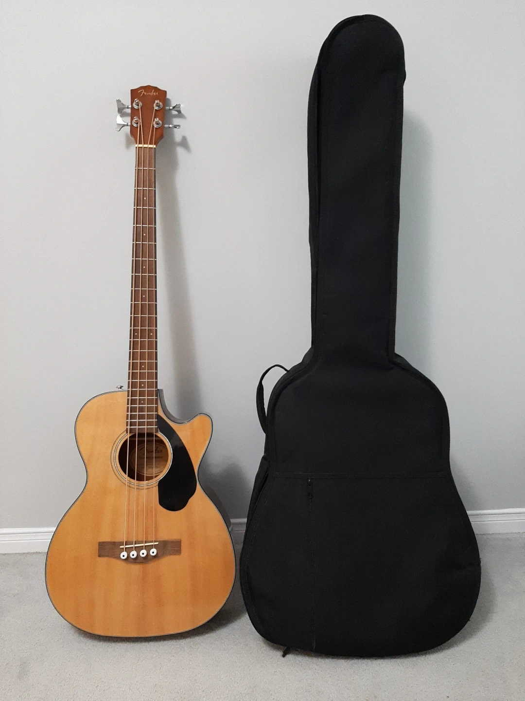 Fender Acoustic/Electric Bass Guitar- natural, in mint condition (listed 409.99 plus tax on Amazon) plus bag (listed 37.99 plus tax on Amazon) all for 390. You do the math on the savings!
