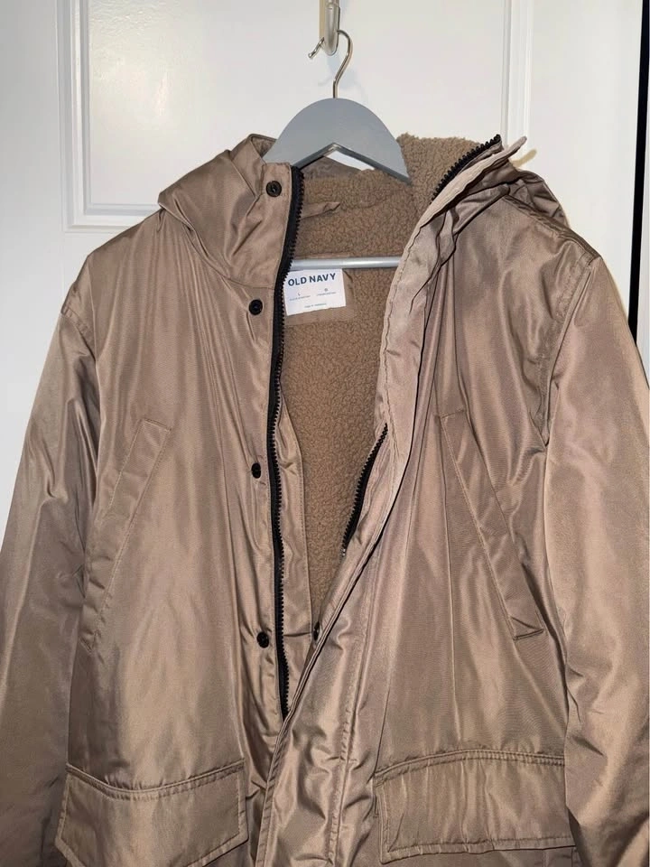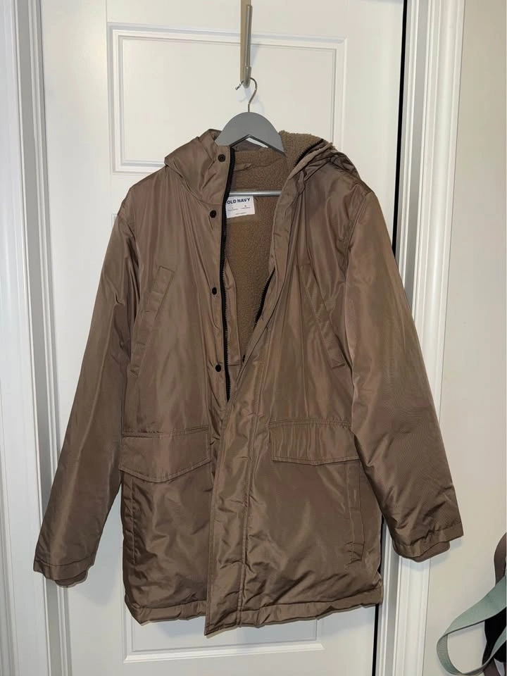 Selling a brand new, never worn Men’s Old Navy puffer jacket in a classic brown. This coat still has that "new" feel and is in pristine 10/10 condition. It’s lightweight but built for warmth, featuring a water-resistant shell that's perfect for Ontario winters.