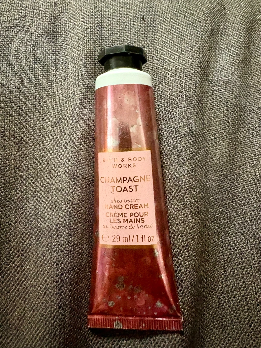 This is Bath & Body Works Champagne Toast hand cream. It's a shea butter formula for hands. Contains 29 ml or 1 fl oz.