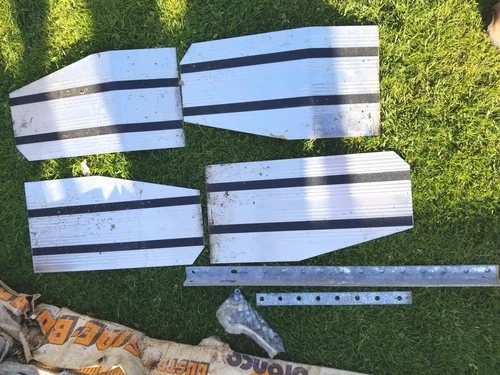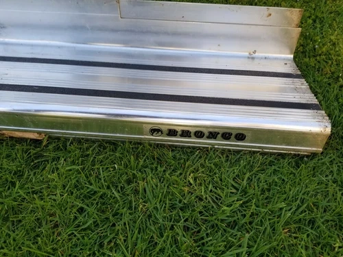 Vintage Bronco truck custom side boards, made in Canada. This set appears to be made of strong, solid aluminum and is in new condition. All accessories originally included are present. The original box was damaged by water, but the boards themselves are new and have never been installed. A couple of small clamps show minor surface rust. Feel free to message if you have any questions!