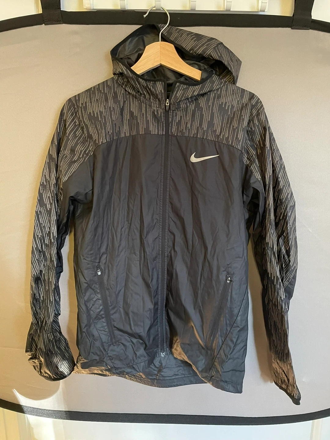Selling a Nike running jacket! It's in great condition and perfect for outdoor runs. It has some reflective material on it as well, if you're a night runner!