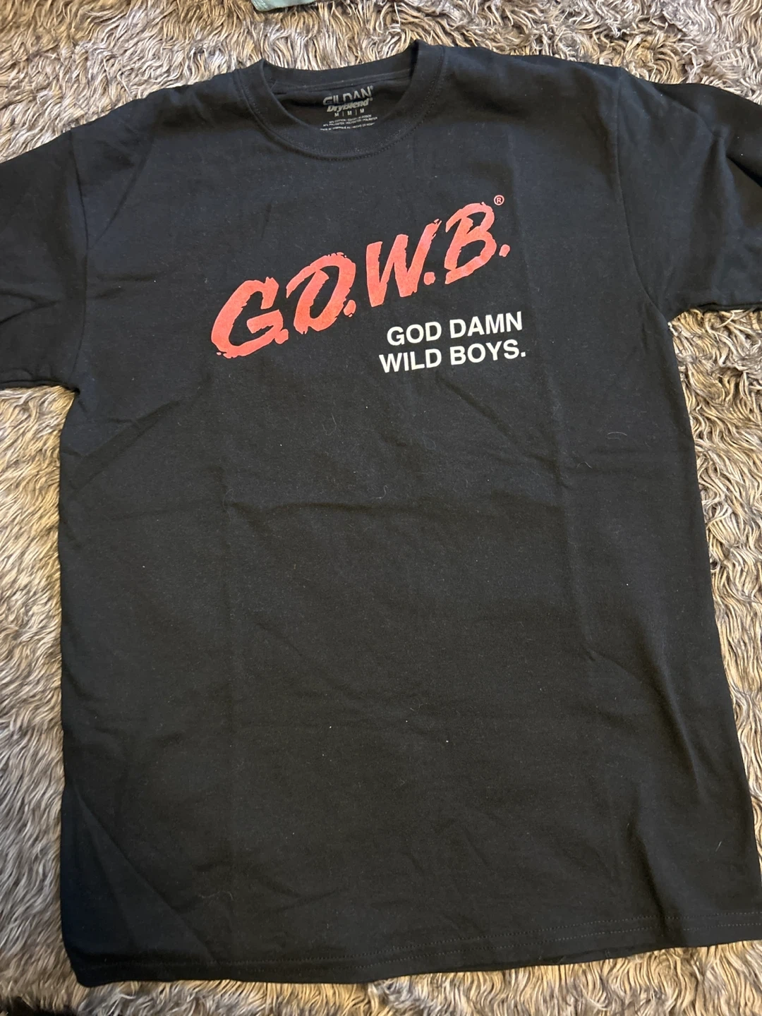 Black G.O.W.B. t-shirt with "God Damn Wild Boys." graphic. It's a Gildan Ultra Cotton t-shirt. Size is medium.