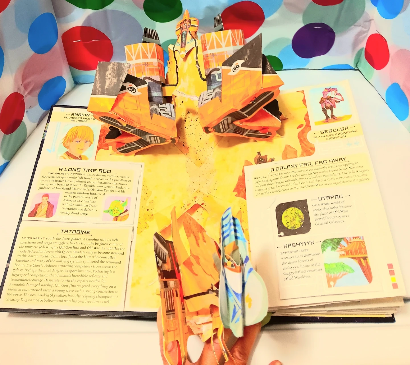 It’s more than just a book; it's a journey through the most iconic moments, characters, and starships, all engineered to leap off the page. Perfect for Star Wars fans and collectors, this pop-up book captures the magic and adventure of the films in an interactive and engaging way. The book is in good condition, showing gentle signs of use.