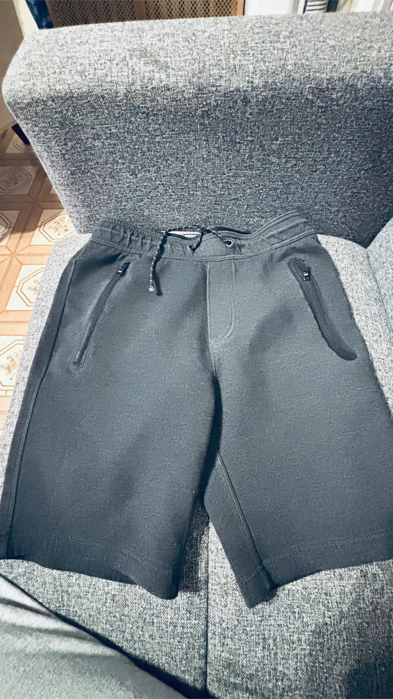These black athletic shorts feature zippered pockets for secure storage. They have a comfortable drawstring waist and are made from a soft, durable material. Perfect for workouts or casual wear!