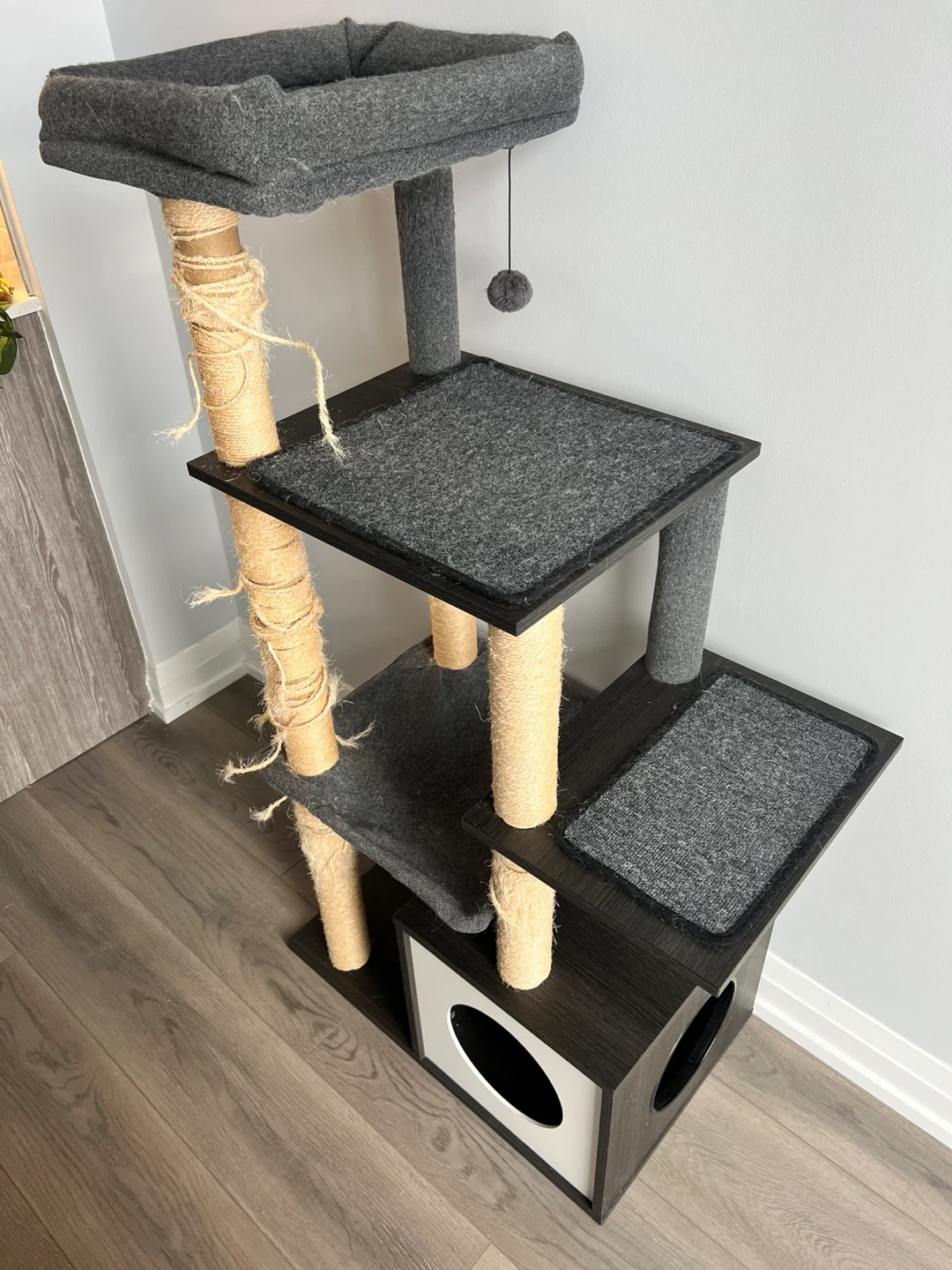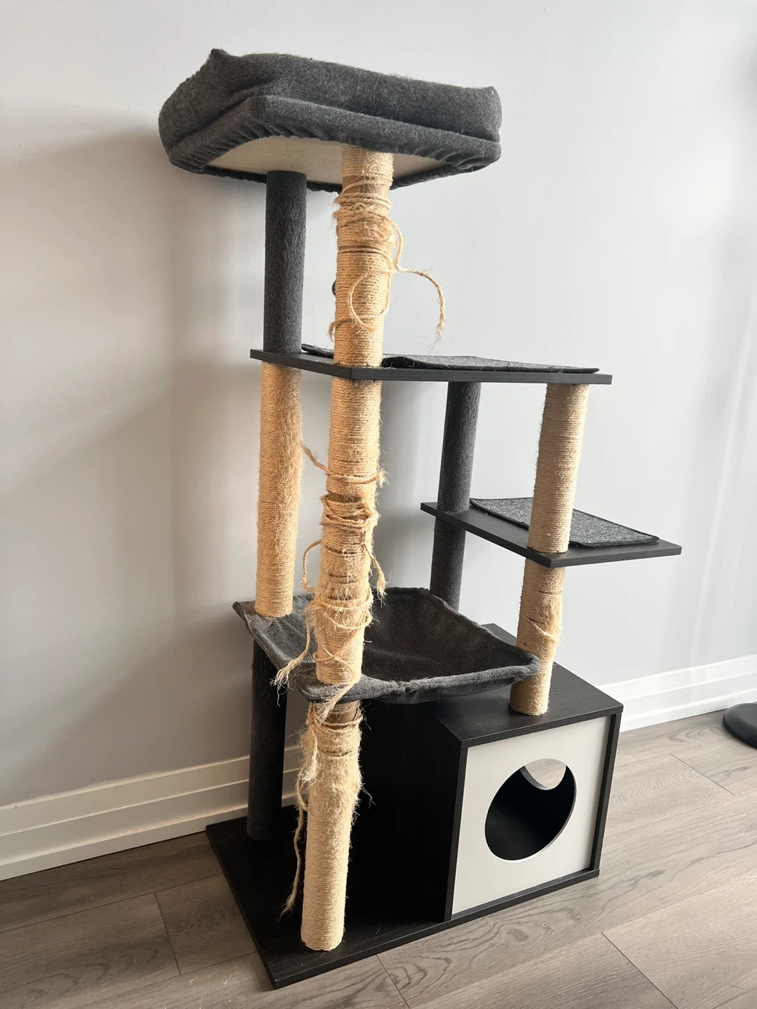 Condition: Good and sturdy. Note: The scratching posts show wear from use, hence the lower price.