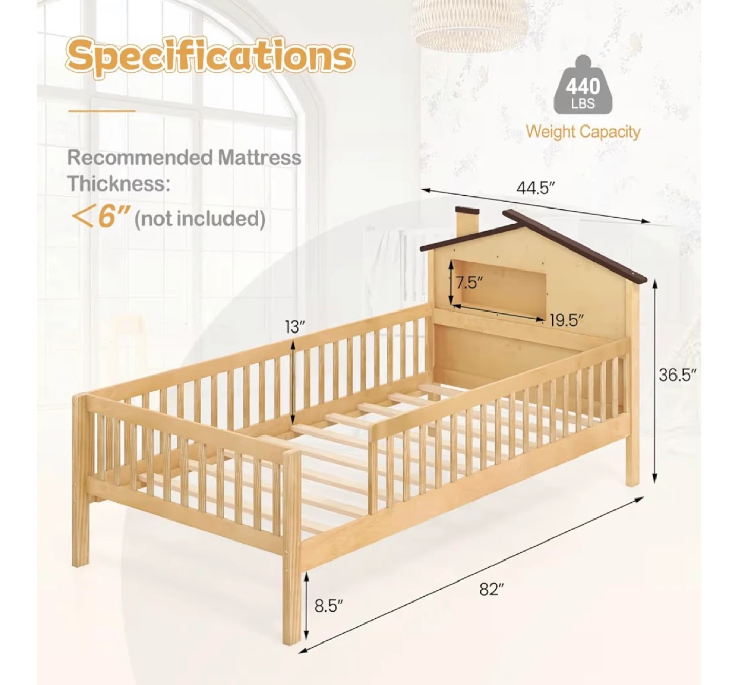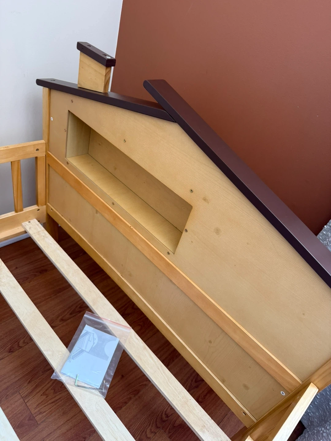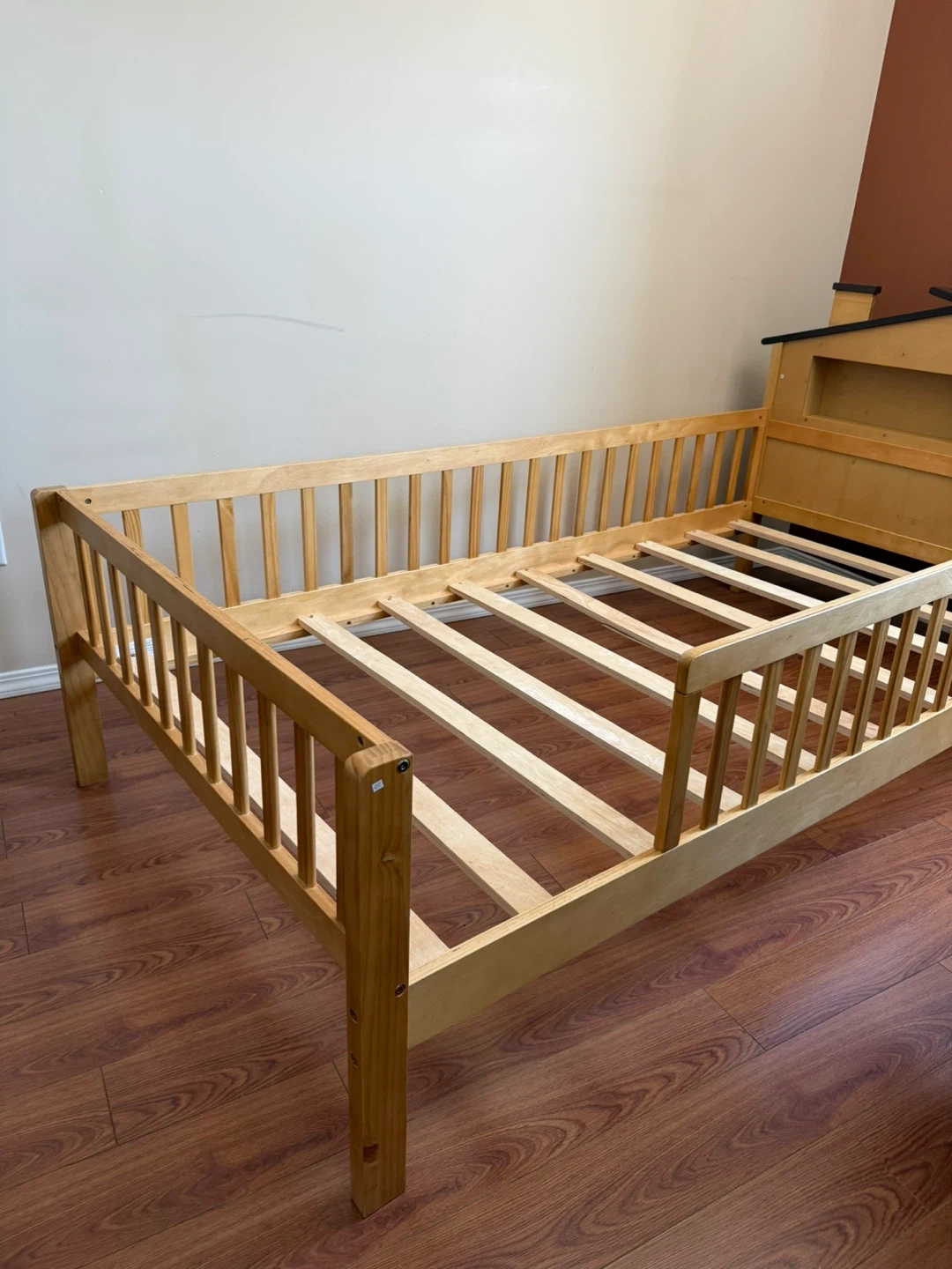 One slat go damaged during moving but other than that bed is in great condition as toddler doesn’t sleep there since we bought it. I believe it might be fixed by someone who’s handy or replaced.