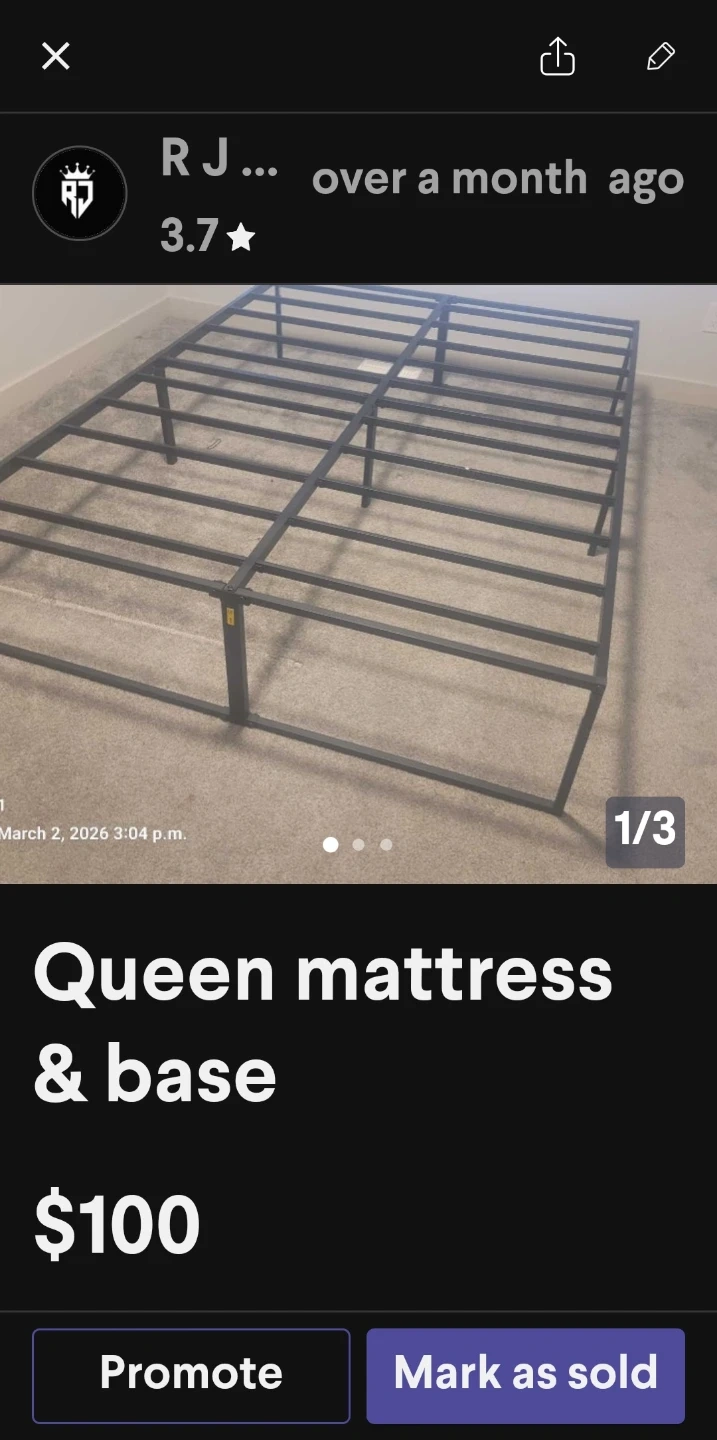 Buy & SellMetal queen bassMetal queen bass$90Already assembled ready to go foldable delivery available for a fee Northside 587-937-1548 ConditionNewWHERE TO MEETCheck LocationView MapSELLERBenny BlancoKillarney282 reviews2 chats·1 favorites·22 viewsSEND CHAT TO SELLERHi Benny Blanco! I’m interested in your listing.Hi Benny Blanco! I’m interested in your listing.Get the Karrot app to chatSign In to chat