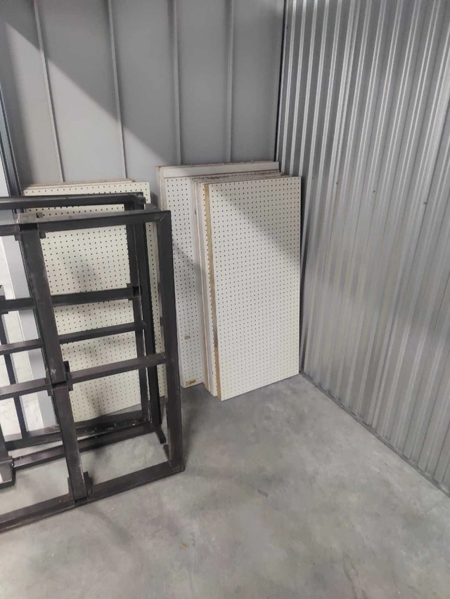 I'm selling a versatile peg board display, perfect for organizing and showcasing merchandise in retail settings or for use in workshops and craft rooms. This display includes the peg boards, metal supports, and base, offering a sturdy and adaptable solution for various display needs. Please note that this item is in used condition, showing signs of wear but fully functional and ready to use. Specifications: * Type: Peg Board Display * Condition: Used If the ad's up, it's still up for grabs!