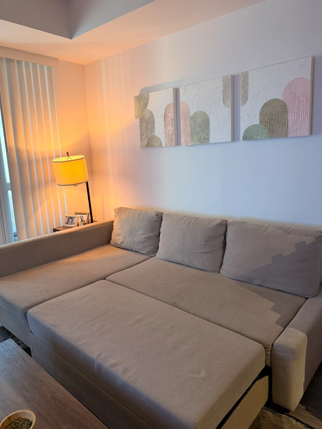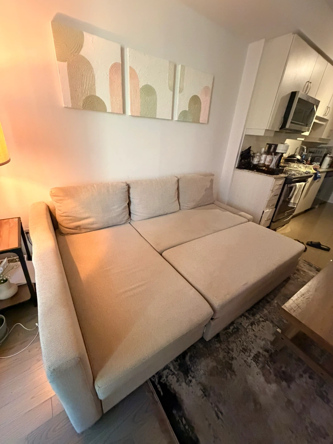 Selling my IKEA corner sofa bed with built-in storage. Super comfortable as a sofa and easily converts into a spacious bed. The storage compartment is perfect for bedding, blankets, or pillows.