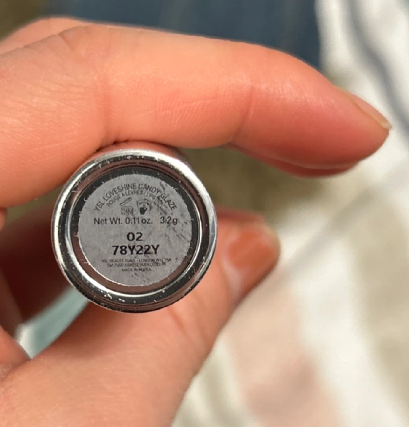 This is the Yves Saint Laurent Loveshine Candy Glaze in shade 02. It provides a glossy finish. Net weight is 3.2g. Almost new
