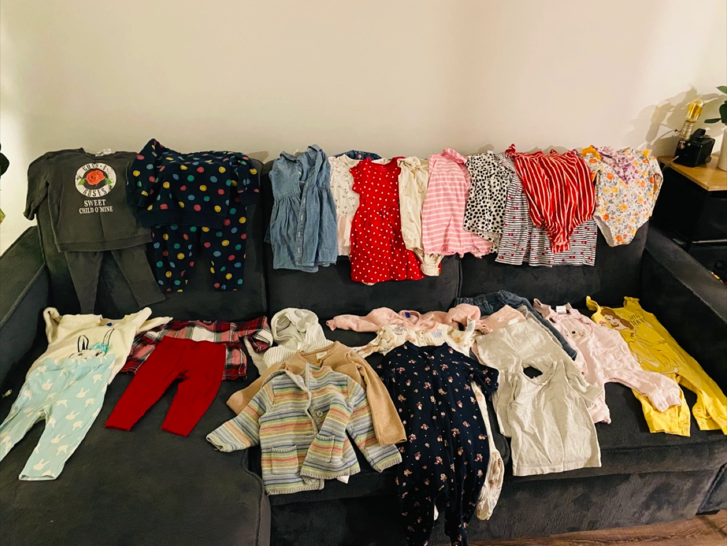 Two adorable baby girl swimsuits, long-sleeved and floral. Bundle includes additional clothing items, sizes 12-18 months. Great for the upcoming summer months. Check other photos for more details.