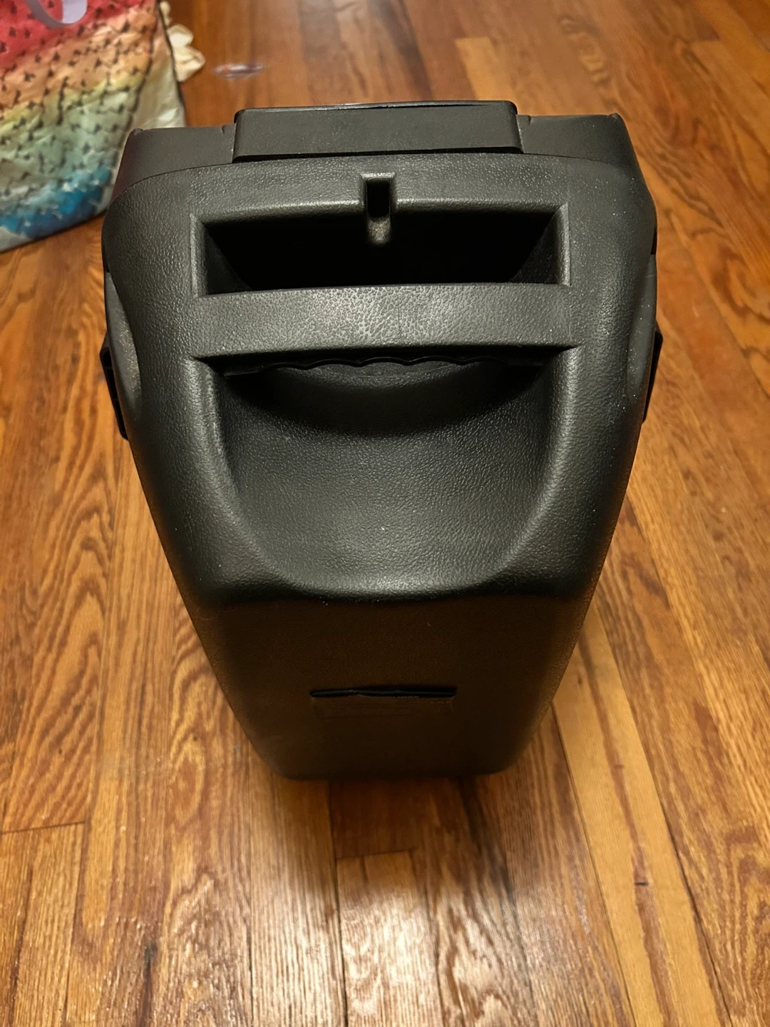 This Atalax portable thumper speaker comes in black. It's great for big parties or personal listening. It includes inputs for USB, AUX, and a microphone.