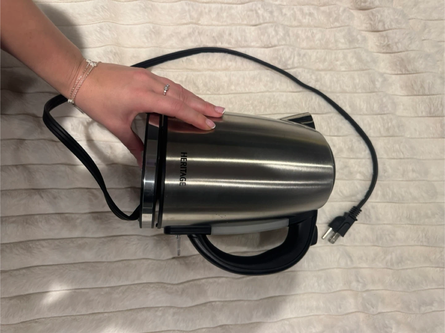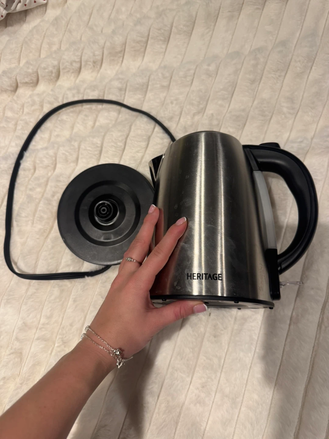 Selling a Heritage stainless steel electric kettle. It's in great shape and ready to boil water quickly for your tea or coffee! It comes with the base and power cord.