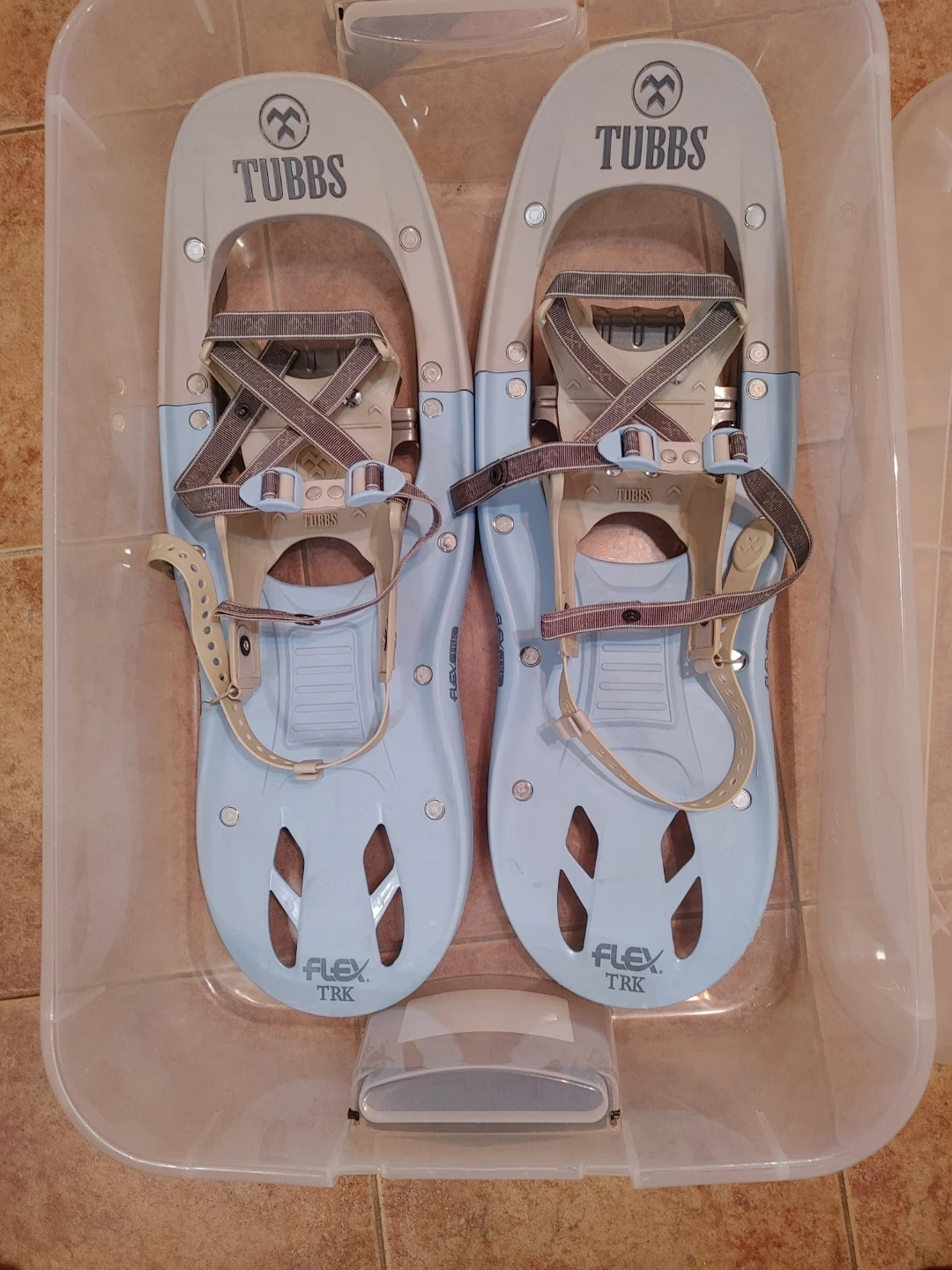 Selling a pair of Tubbs Flex TRK snowshoes in light blue. They're in great condition and ready for some winter adventures! Pick up only please as I do not drive. Thank you