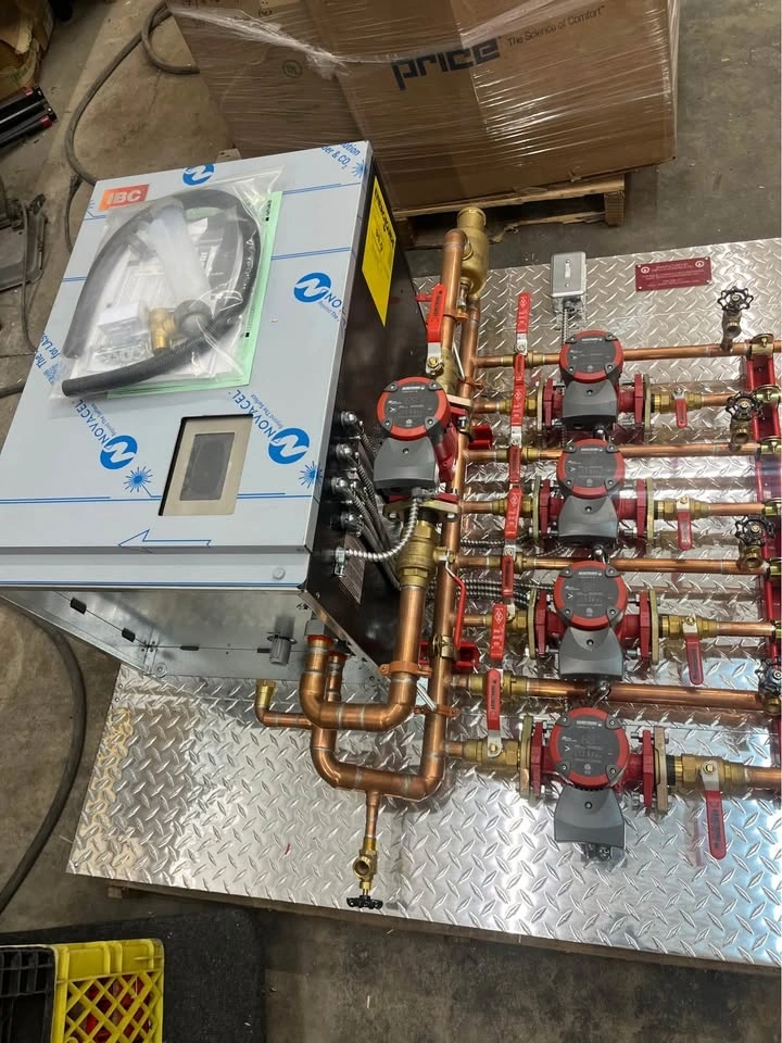 Professionally engineered, fully pre-built hydronic panel featuring a high-efficiency IBC VX Series condensing boiler and Armstrong Compass H ECM circulators. Pre-wired, pre-plumbed, pressure-tested, and ready for fast installation—perfect for new builds, renovations, garages, shops, and custom homes.