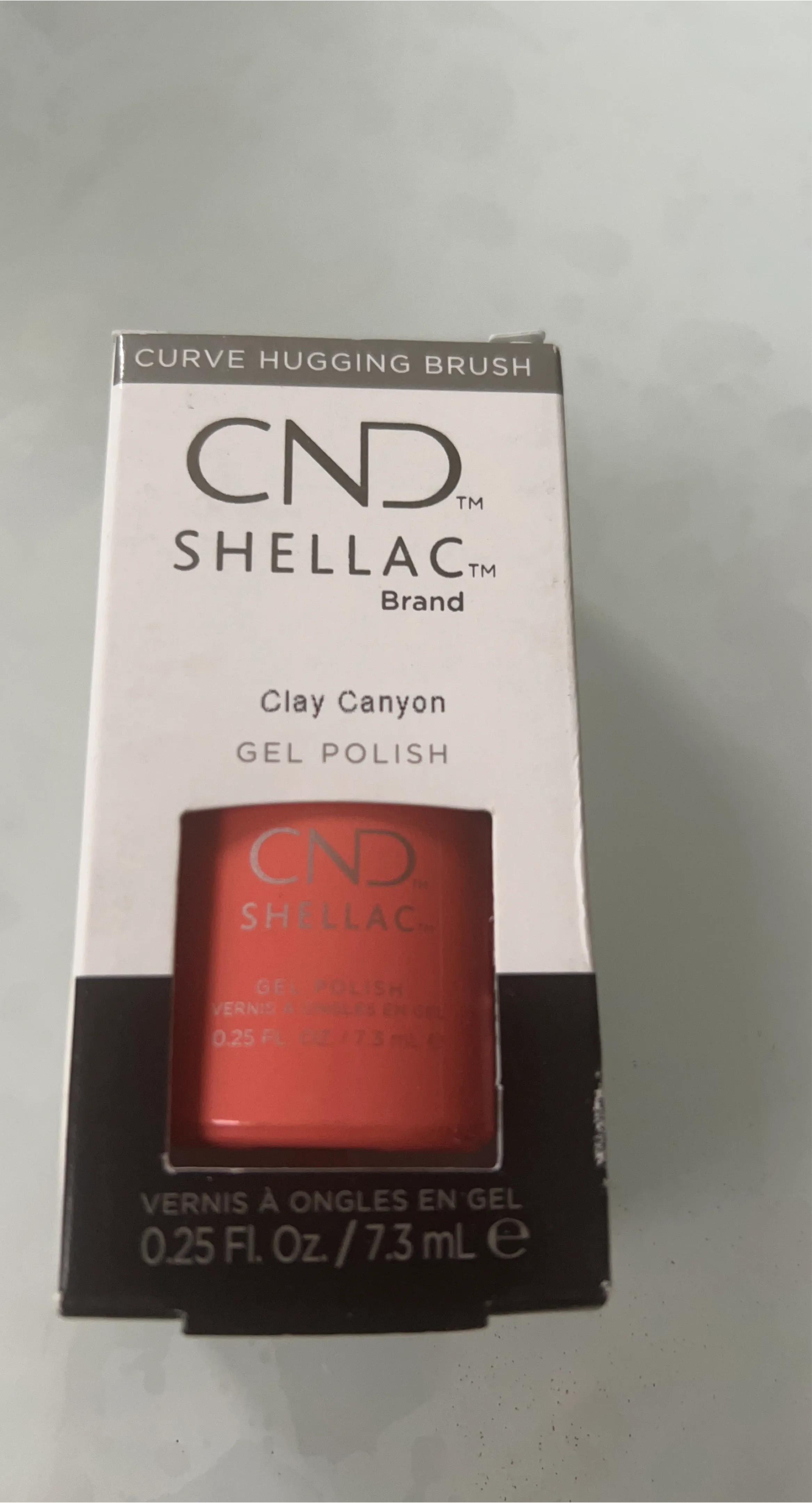 CND Shellac gel polish in the shade Clay Canyon. It's a 0.25 fl oz / 7.3 mL bottle. This gel polish features a curve hugging brush.