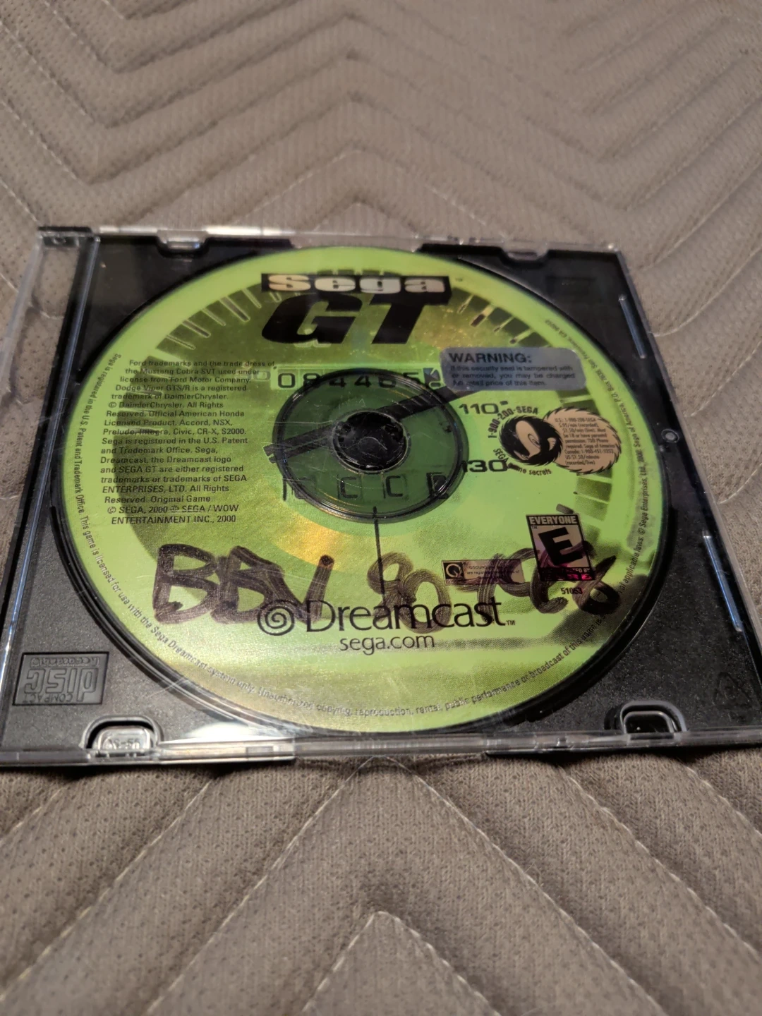 This is the Sega GT video game for the Dreamcast. It was released in 2000. The game is rated E for Everyone.