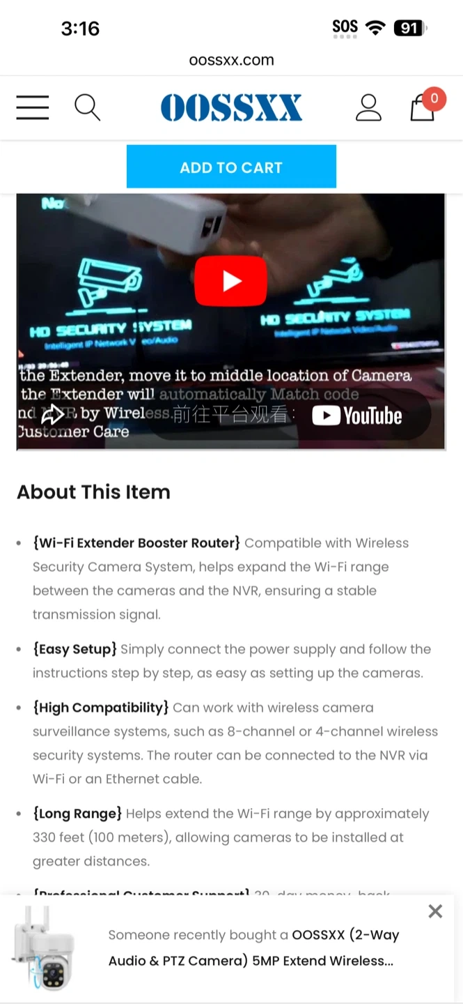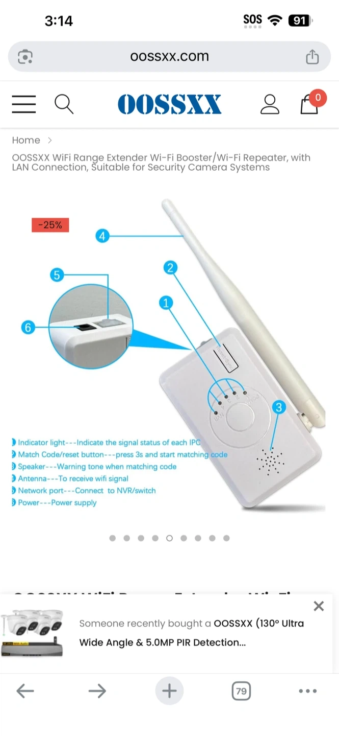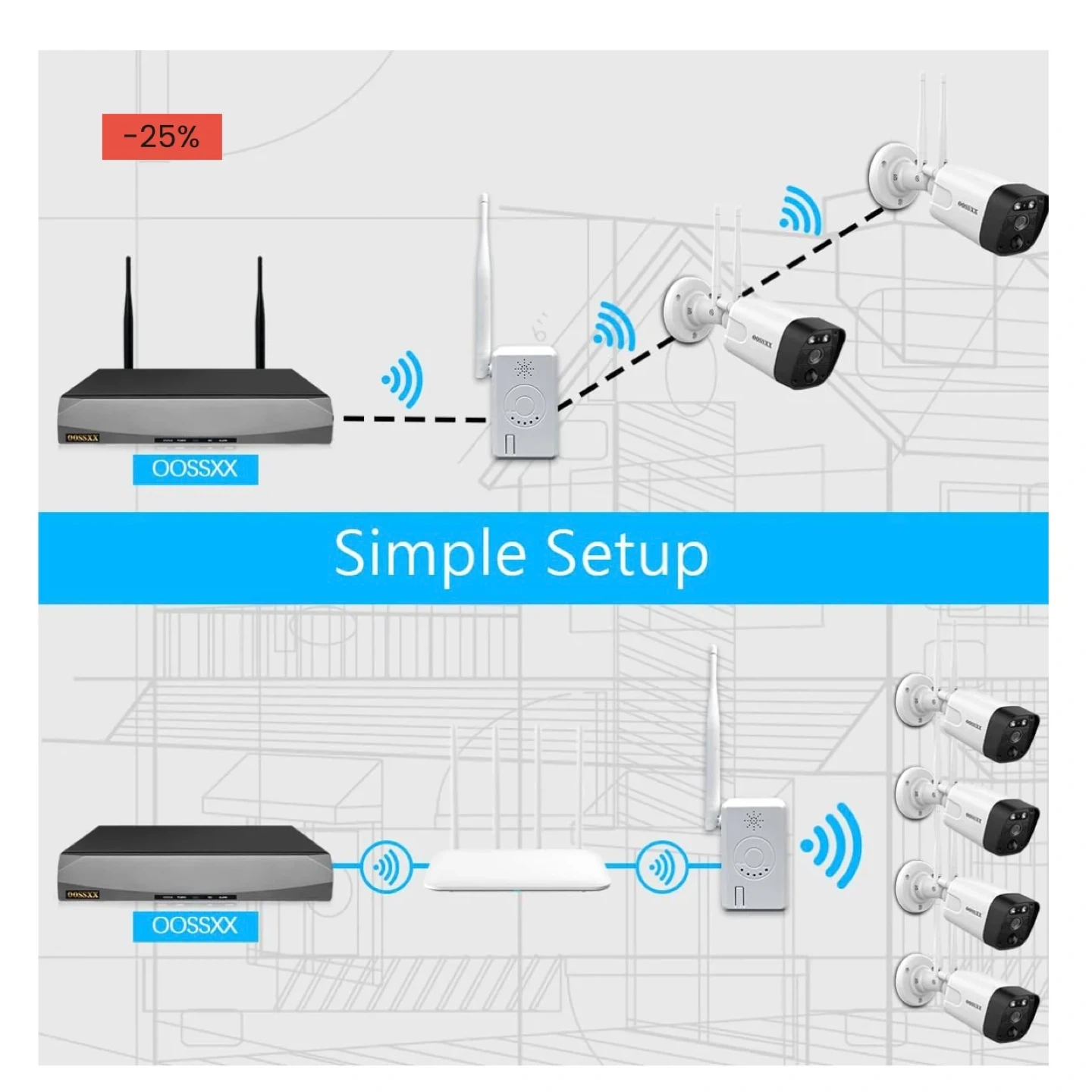 OOSSXX WiFi Range Extender Wi-Fi Booster/Wi-Fi Repeater, with LAN Connection, Suitable for Security Camera Systems
