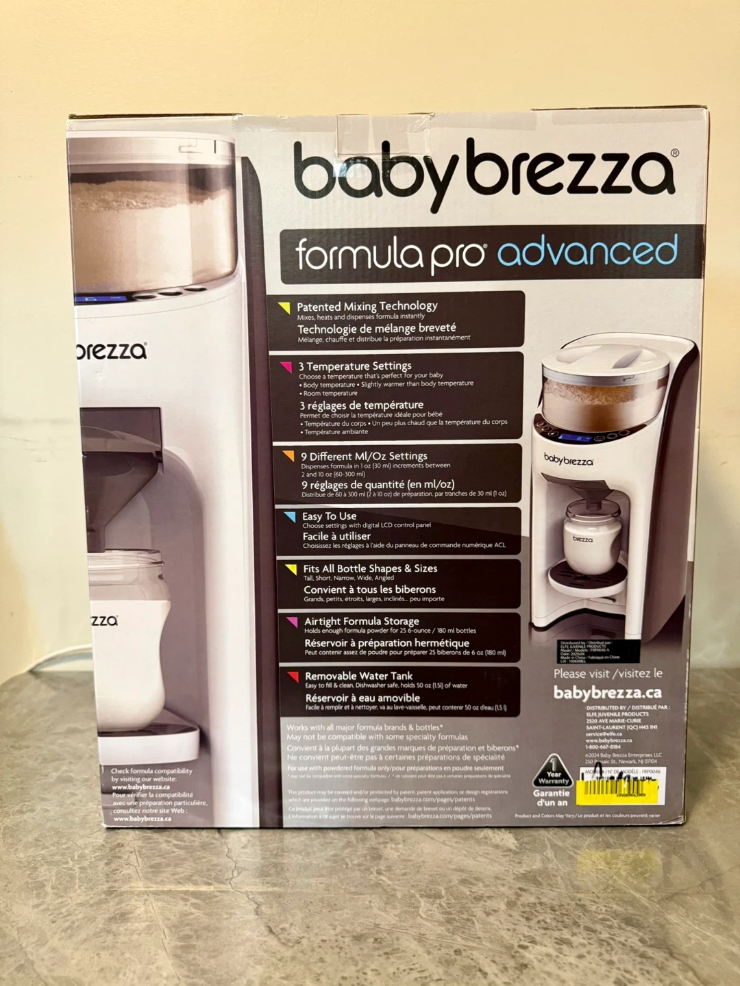 The Baby Brezza Formula Pro Advanced Formula Dispenser is the most advanced way to automatically make a warm, formula bottle instantly. The Formula Pro Advanced mixes formula and water to the perfect consistency without any measuring, mixing, waiting or fuss! You can customize your baby’s bottle with 3 temperature settings and dispense 2-10 oz/60-300 ml of formula or water only. Works with virtually all formula brands and all bottle types