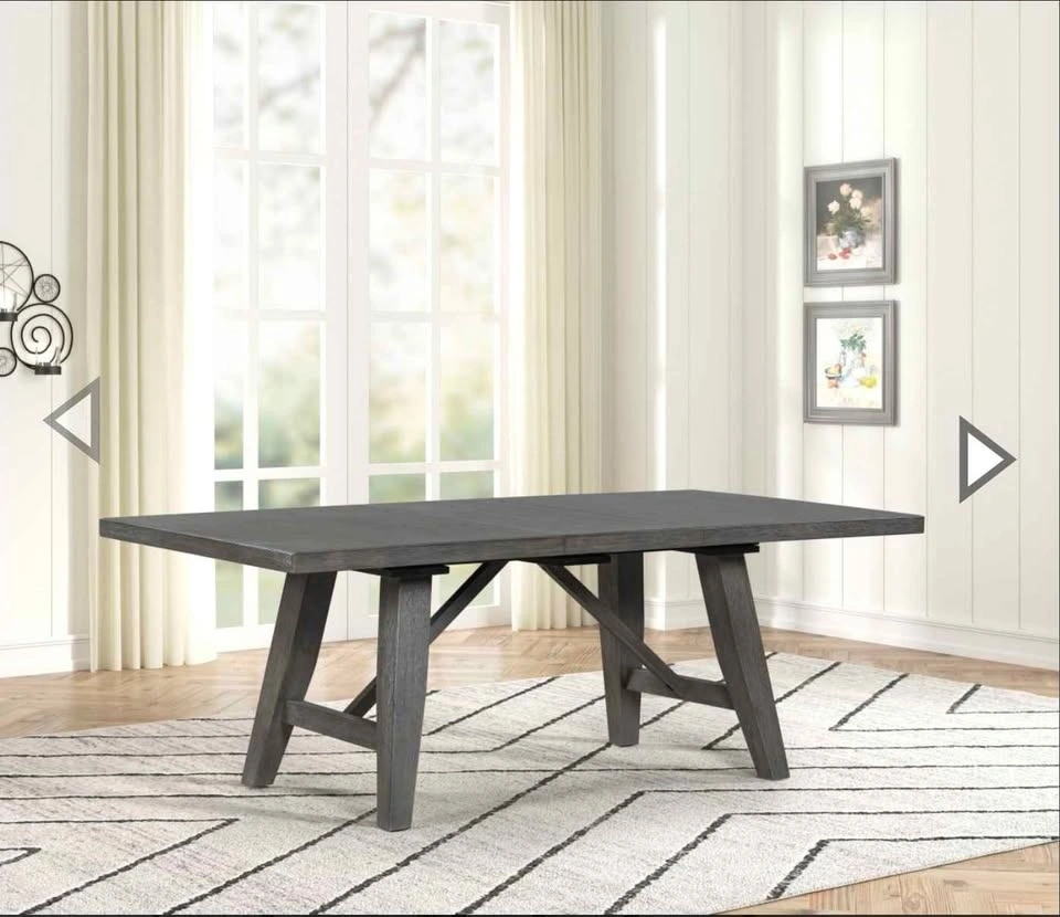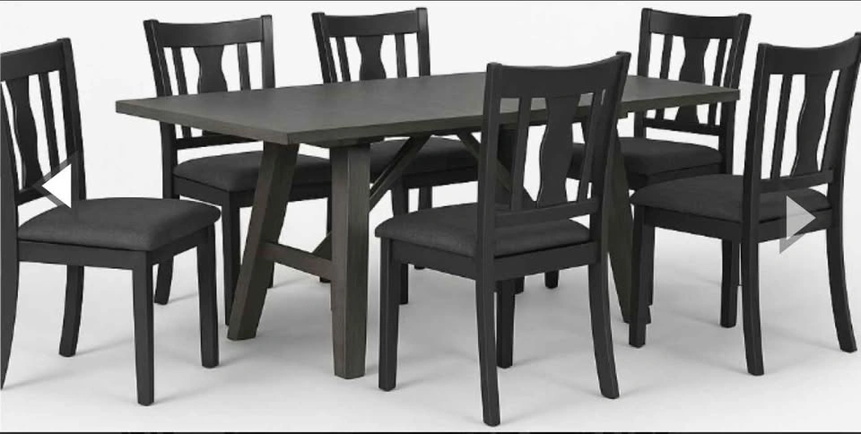 CLEARANCE SALE!!! Table crafted from solid rubberwood with an acacia veneer top; chairs built from sturdy rubberwood with birch veneer accents for a cohesive, long-lasting set. Features an 18" removable extension leaf, making it easy to accommodate additional guests. Table designed with splayed legs that offer excellent stability and a modern, sculptural look. Chairs include contoured backs that provide comfortable, supportive posture for everyday dining. Chair seats use 20 kg foam density for balanced comfort and long-term durability. Let me know if you're interested!