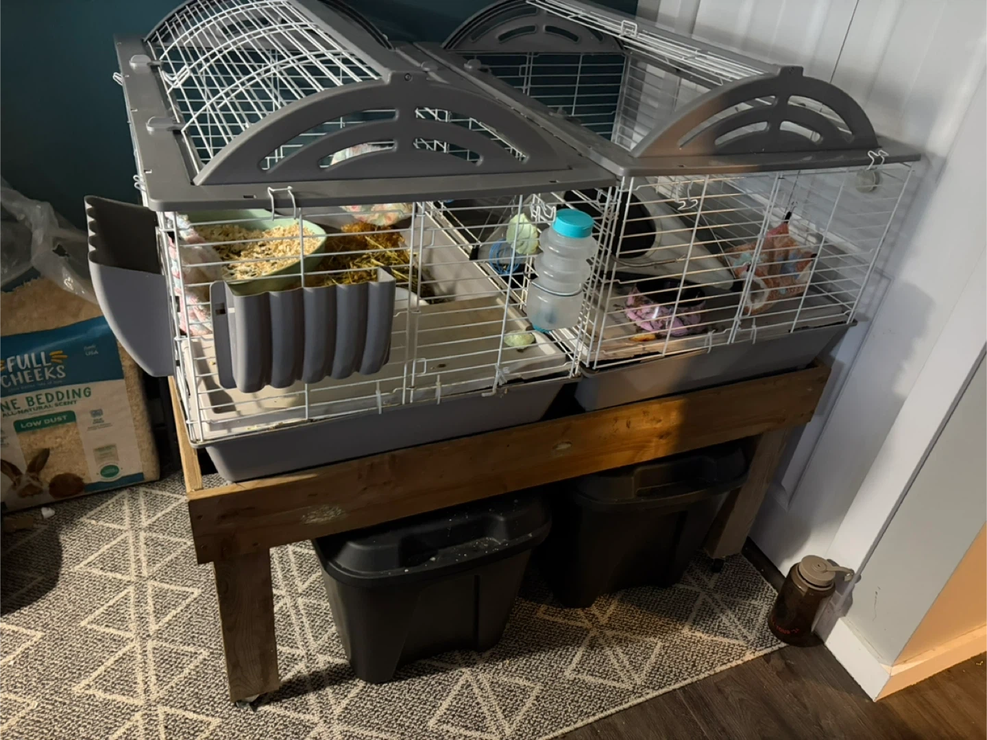 Cleaned and ready to go! 2 cages put side by side with homemade stand.
