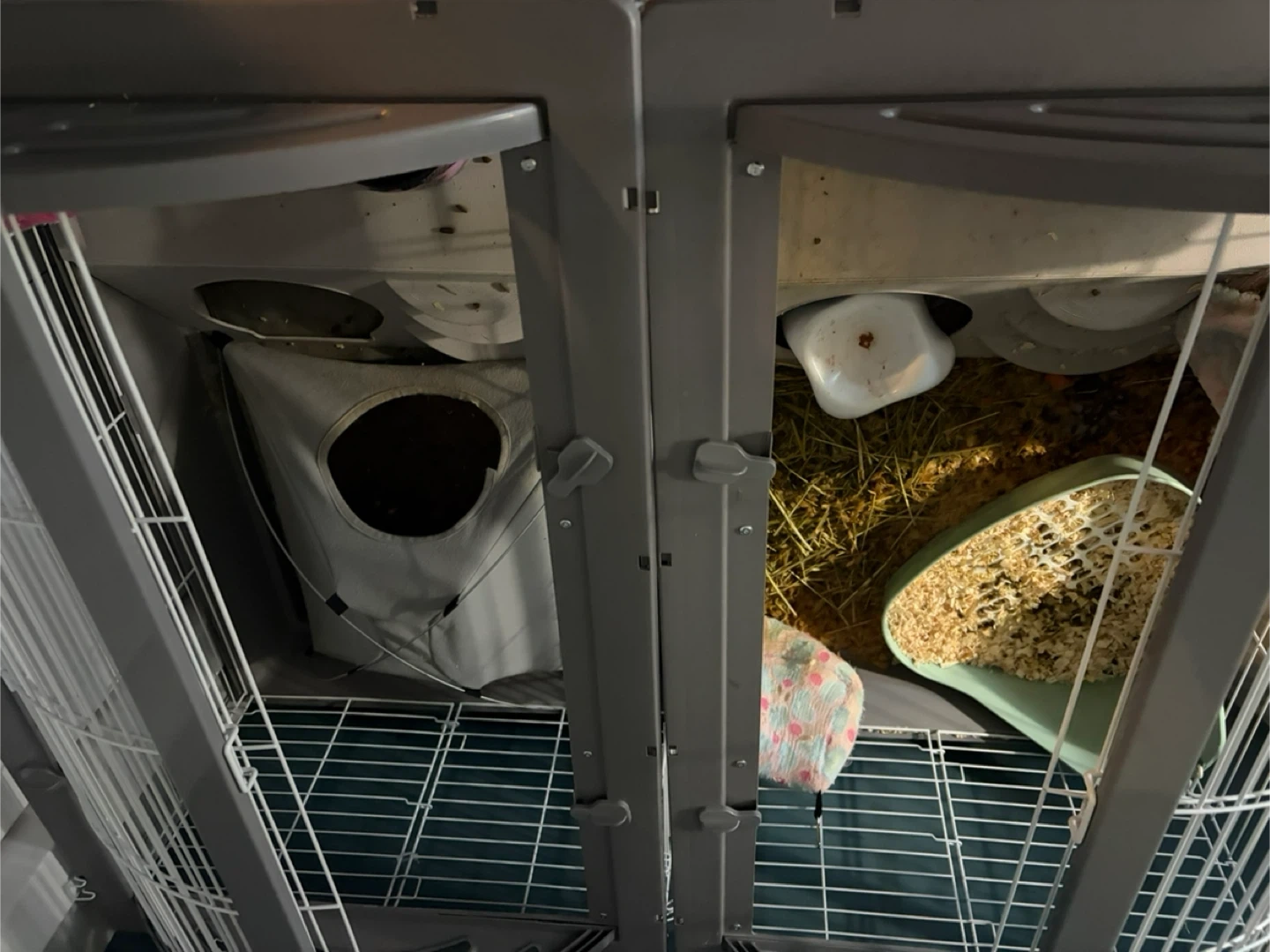 Cleaned and ready to go! 2 cages put side by side with homemade stand.