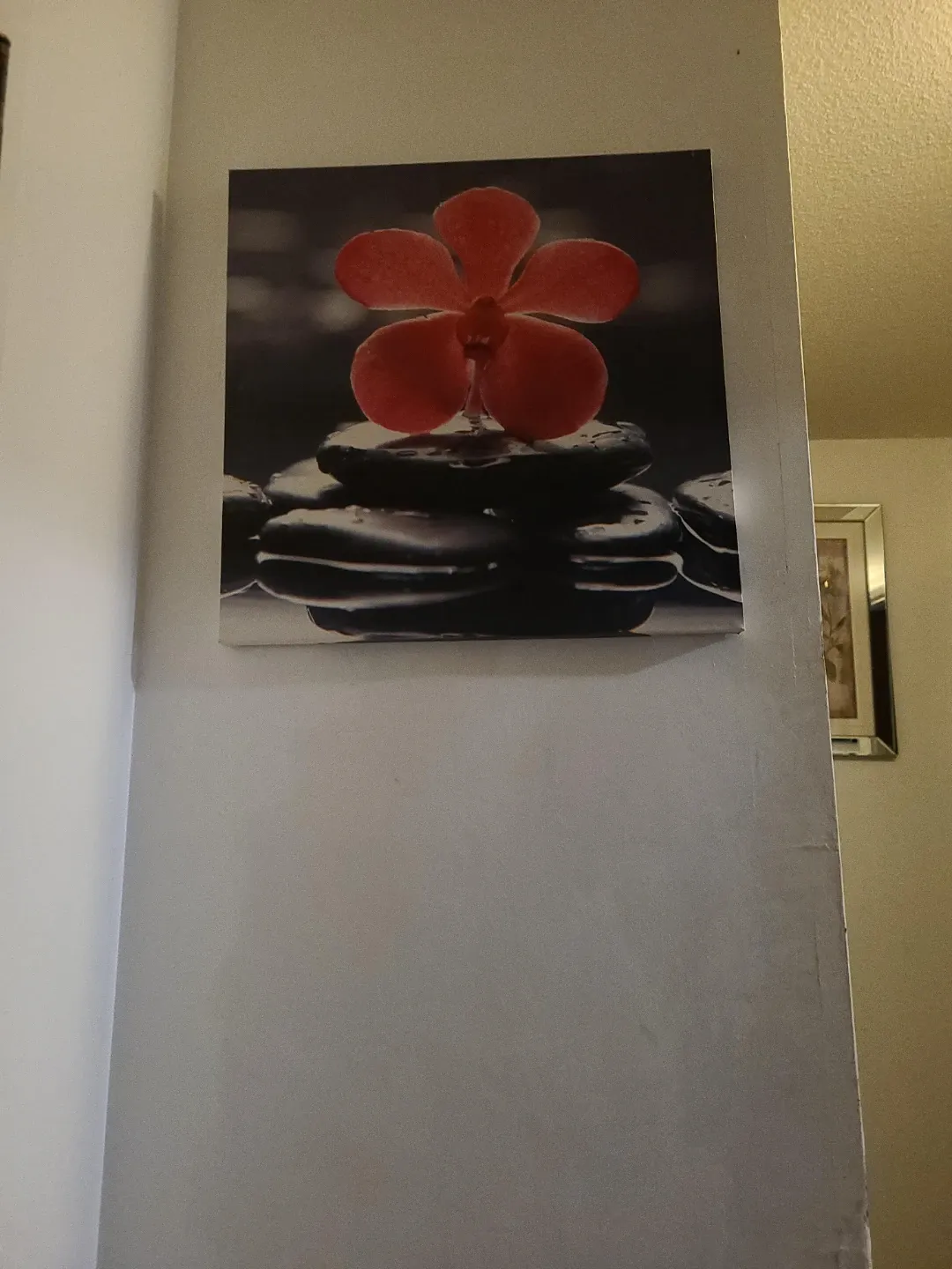 Canvas Wall Art - Red Orchid on Stacked Stones