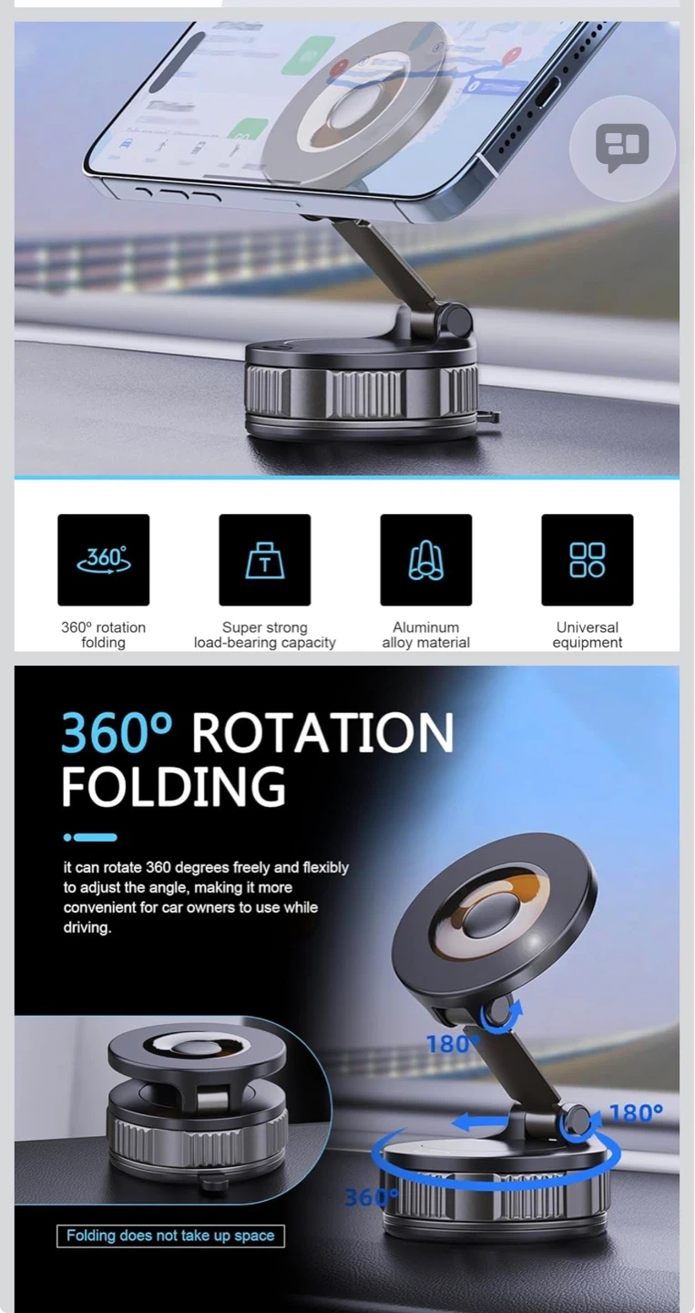 Upgraded Magnetic Phone Holder Car Mount,Foldable Car Phone Holder Mount with Vacuum Adsorption Design & 360 Degree Rotating Base,Practical Suction Cup Phones Holders